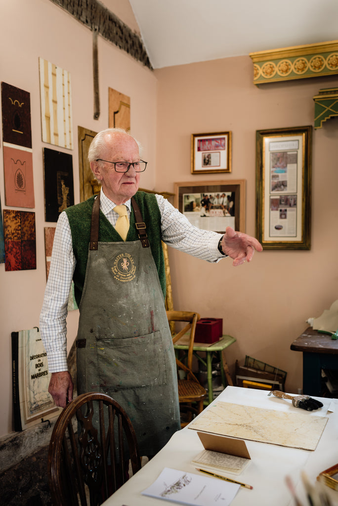"In 1961, I opened my own workshop on the King’s Road, London, specialising in furniture painting, gilding and lacquering, which quickly established a reputation for its high-quality work. In 1982 we moved to Guernsey and I opened a school, running intensive courses specifically for furniture painting and gilding. People flew from all over the world to attend, so when we left Guernsey nine years later, I took the studio to Battersea, London, for many years."