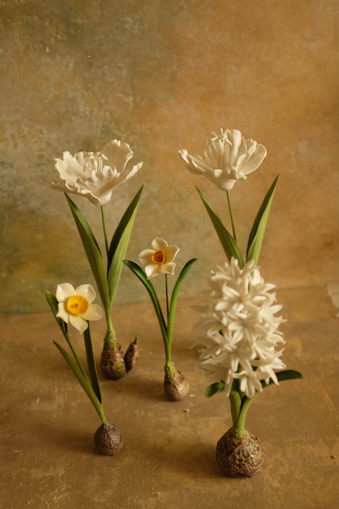 My inspiration comes from nature. I live in the countryside, surrounded by woods, and I often go for long walks where I gather branches or flowers to later reproduce. Every year in my garden, I plant around 300 tulips, along with roses – I am passionate about rose bushes – as well as hydrangeas and poppies. Some of the poppies grow up to 1.5m tall.