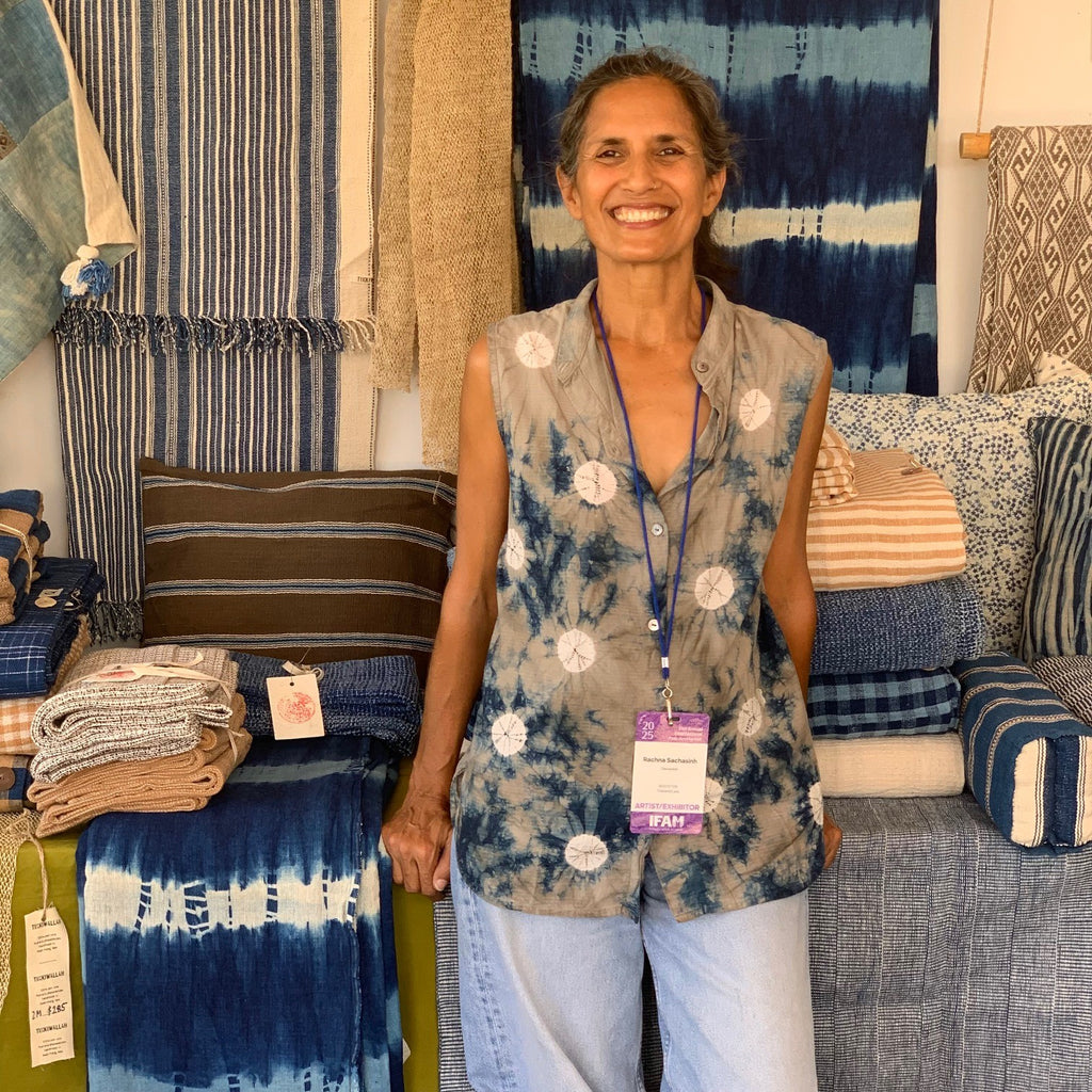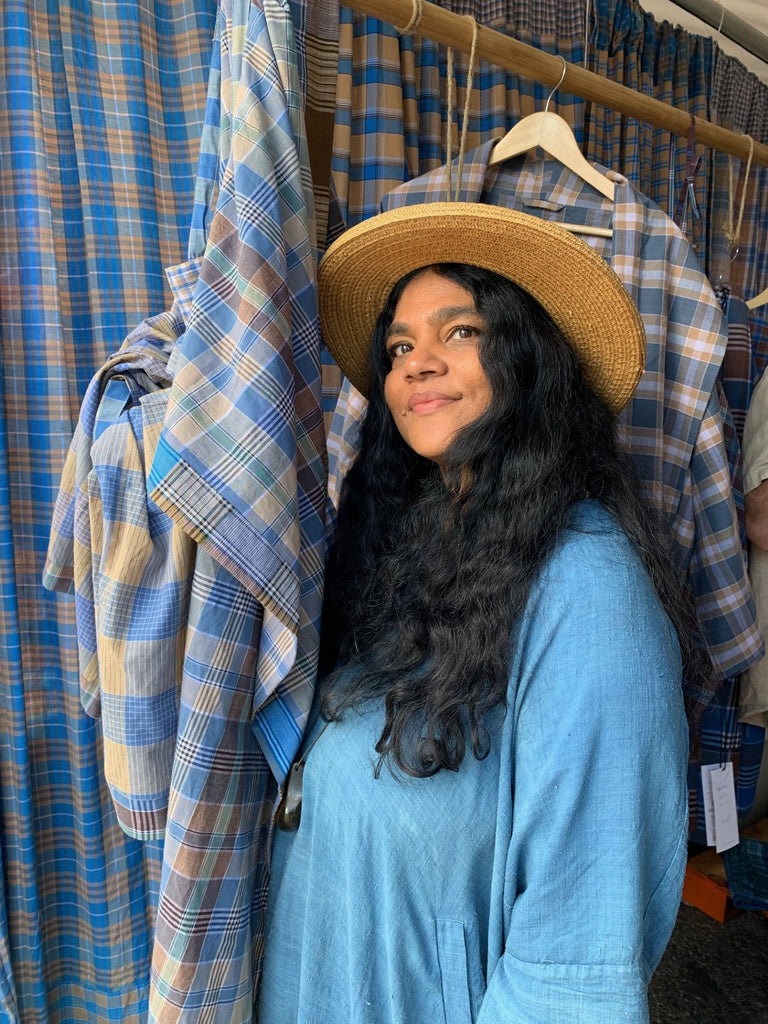 Kavita Parmar is a self described entrepreneur, optimist, heritage textile specialist, idealist and is obsessed with Traditional Madras. Working in India with hundreds of master weavers of this unique fabric created in the 16th century, she has sought to preserve its innate characteristics — handwoven, hand dyed, with the character of subtle beauty achieved via handwashing. Self taught, Kavita has fashioned this authentic fabric into well cut clothing, accessories and homegoods, with a lot of panache.