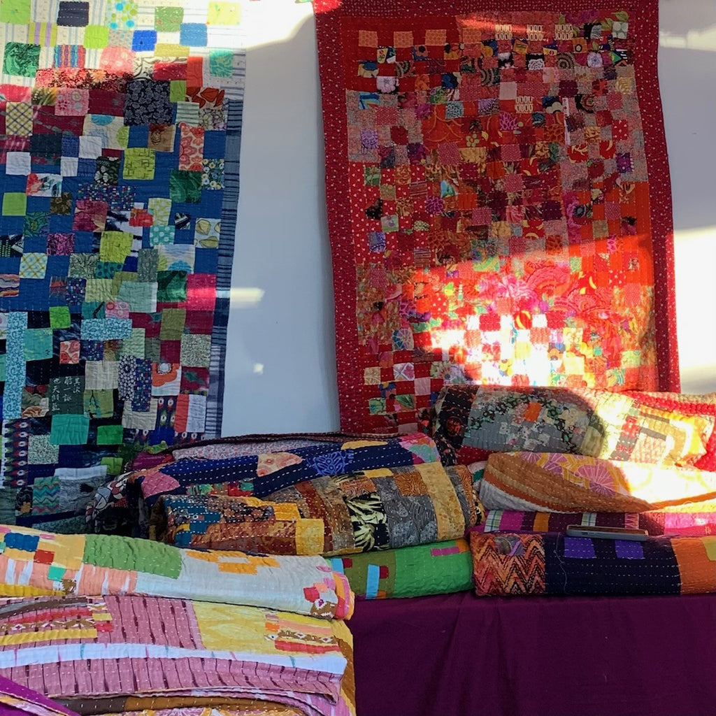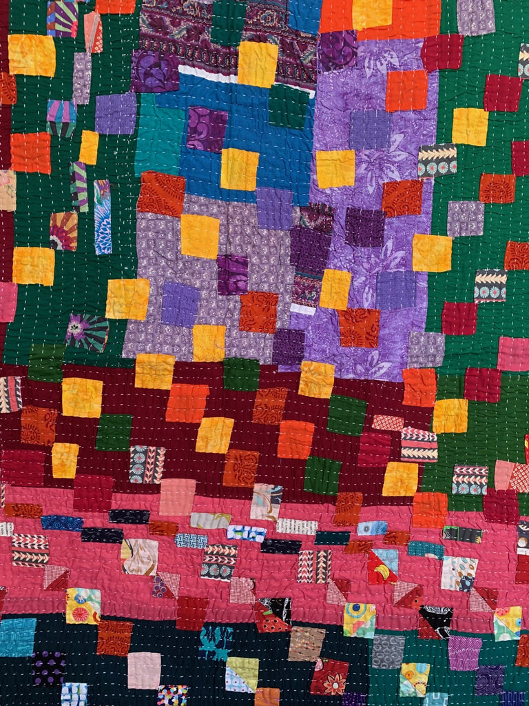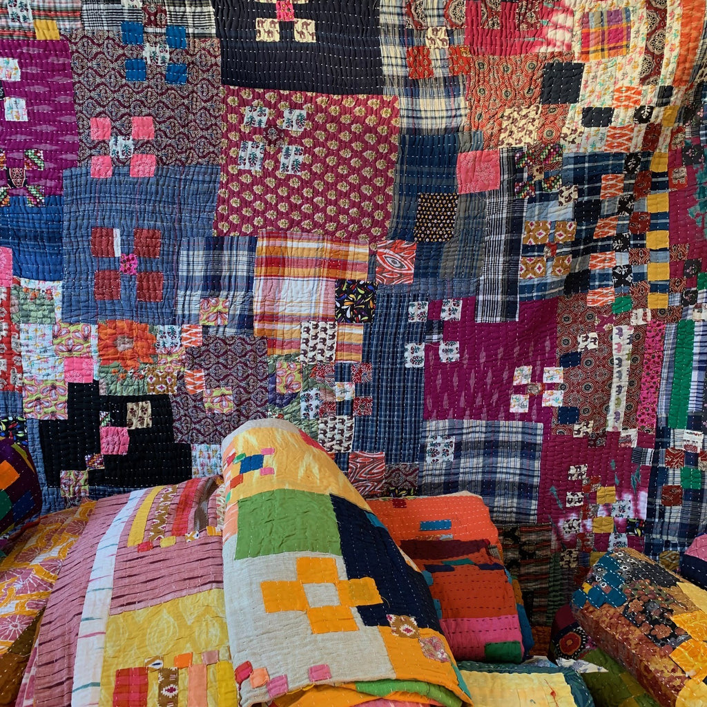 With the objective of transfering the craft of the Indian kantha tradition into a unique art form, Anitha N has worked for years with Siddi women in Karnataka— immigrants from Ethiopia and Mozambique, whose kavands or colorful quilts are stitched from sari scraps and old clothes. Each kavand is made by one woman, expressing her personal history with her special signature. The quilts are functional, exemplifying creativity and sustainability, imbuing the artist with a sense of honor and value, often after years of abuse and violence. They are modern masterpieces. I think Gloria Vanderbilt might have adored them too.