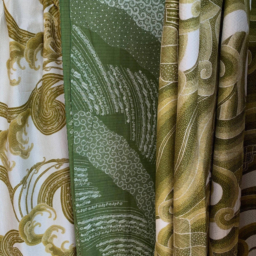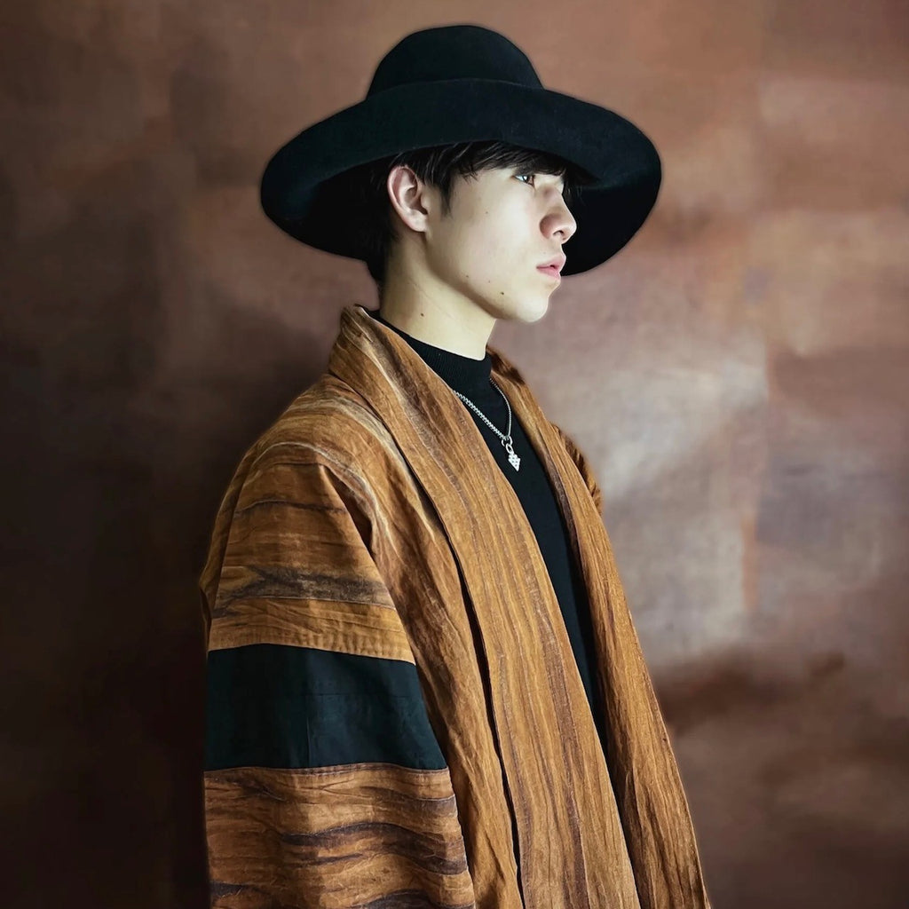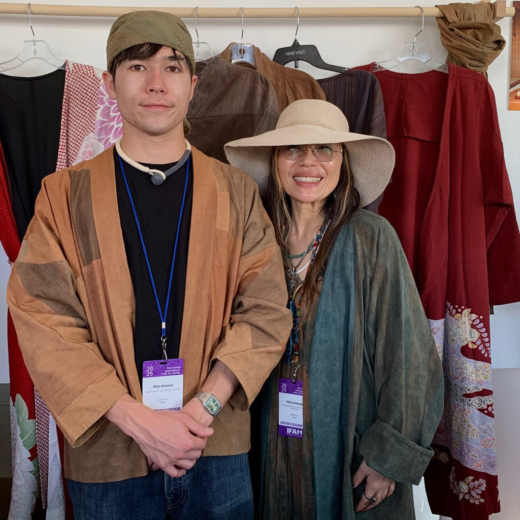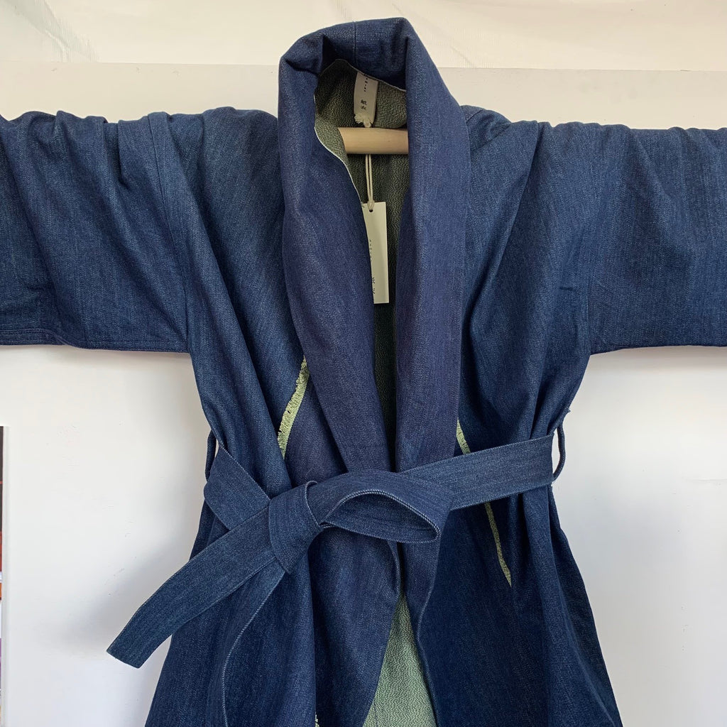 Maki Aizawa and her mother, Tsuyo Onodera, founded Kamiko, a women’s collective of licensed kimono makers in Tohoku. The pair have manifested their important vision of revitalizing the art of kimono making and hand stitching, by rebuilding and refashioning antique kimonos for modern times, and by employing collage and zero waste techniques, and recycled kimono silks. Their exquisite kimonos compete for attention with the very coolest haori and hanten— jackets and coats hand made in denim and raw cottons.