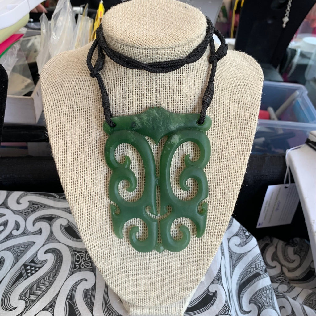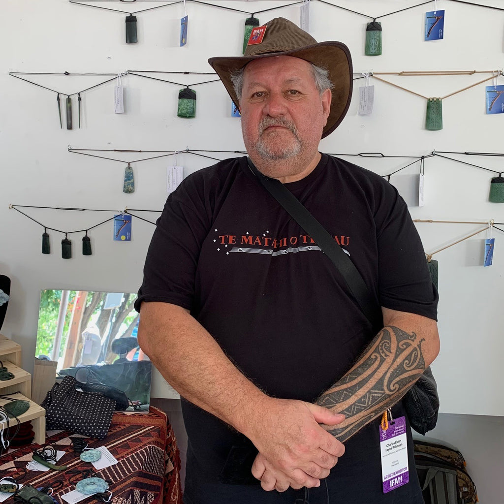 Whakairo is the Māori art of carving, a deeply spiritual and cultural practice, and Fayne Robinson (Ngāi Tahu) is a master carver of wood and stone, who leads an inter-generational collaboration with his nephew Caleb, and emerging artist Tutuko Wallace. They presented bold jewelry in pounamu greenstone, a hard jade, fuchsite and Aotea kyanite, stones full of compassionate energy wrapped in waxed flax cords to stunning effect. One feels the power of the taonga, the carvings as record of tribal narratives and identity, as one imagines Elsa Peretti might have coveted these elegant objects.