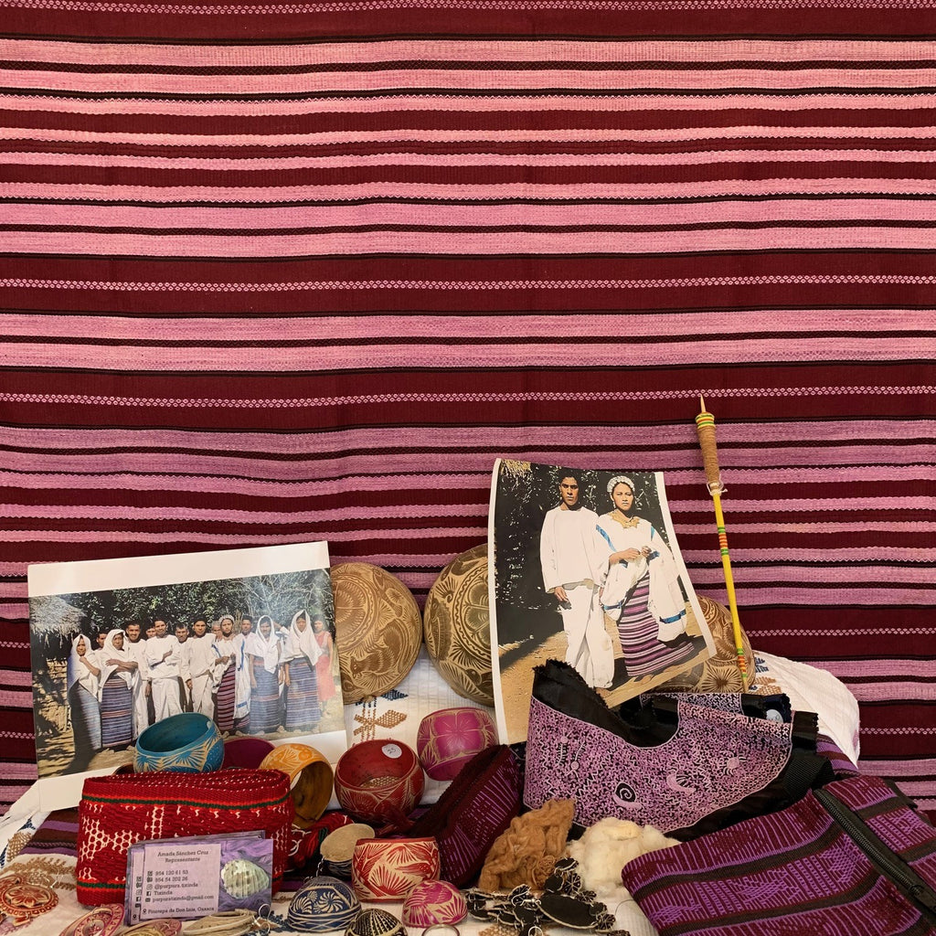 Handwoven on backstrap looms as it has been for centuries, this woven art form with its singular range of purple hues, called tixinda by the Mixtecs, is highly endangered due to the over harvesting of the rock snail, tourism and commercial development. We may sadly wake up from this dream in our lifetime!