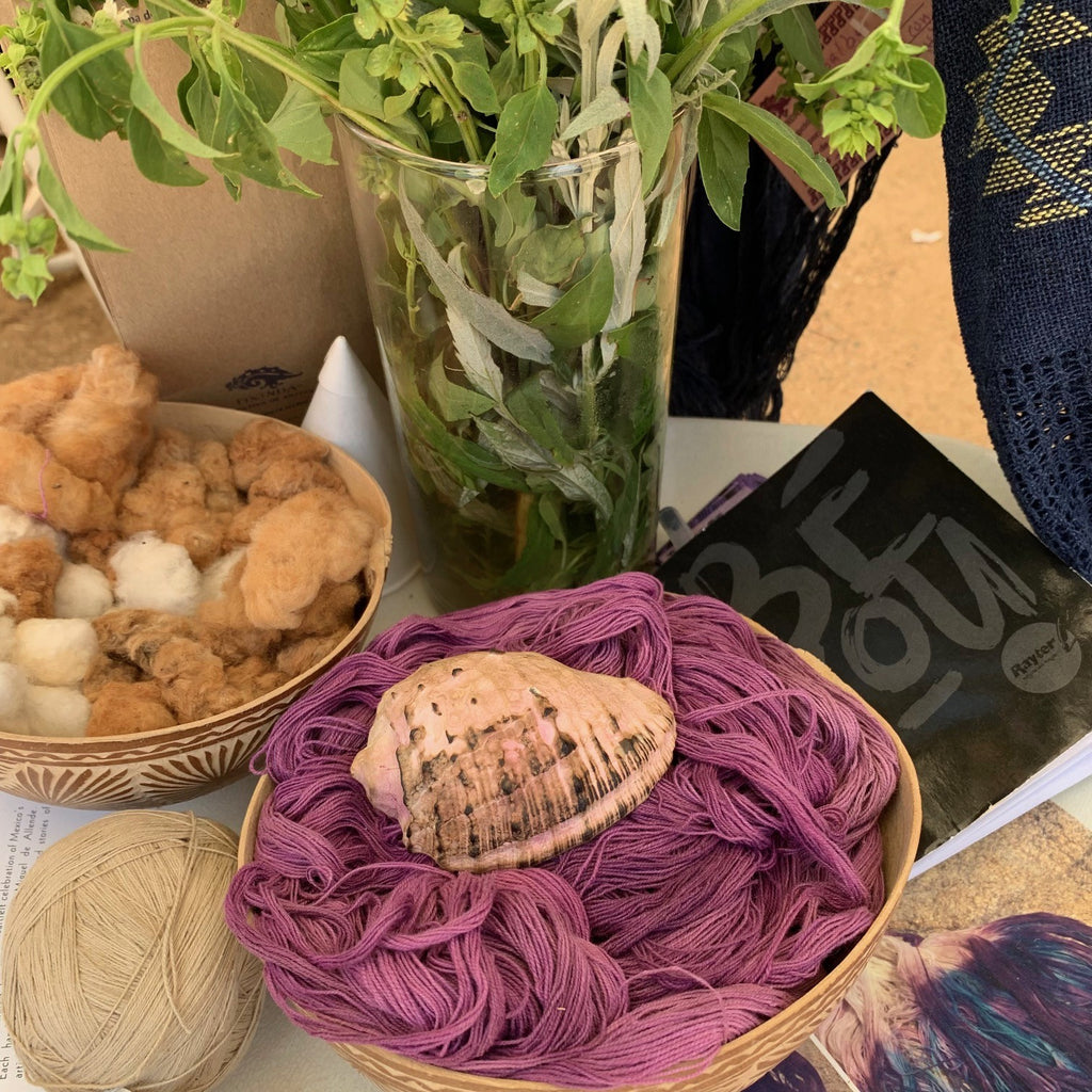 Some things in life are truly rare, they exist in only one place in the world. And this is the case of the Purpura Pansa sea snail, which has been milked by the Mixtec people of Oaxaca for over 1500 years, yielding a sacred purple dye (the mollusks are not harmed) used by the Mixtec cooperative Mexican Dreamweavers. Using their own white and brown coyuchi cotton, and creating other naturally dyed colored threads, some of Mexico’s most sophisticated huipiles, blouses, caftans and shawls are born.