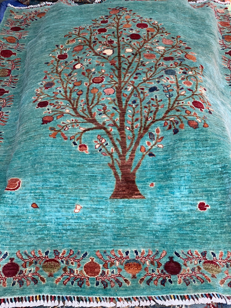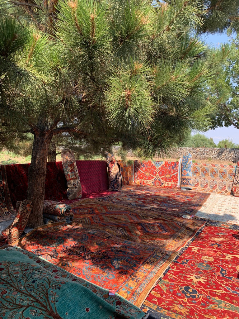 The wool warps are often knotted with up to one thousand knots per inch, with a carpet requiring the skill of many hands, and up to six months to finish. One of Central Asia’s oldest traditions continues robustly today, with carpets originally layered in the tents of nomadic tribes, in the palaces of the nobility, and in the magical interiors which Mongiardino created for Rudolf Nureyev.
