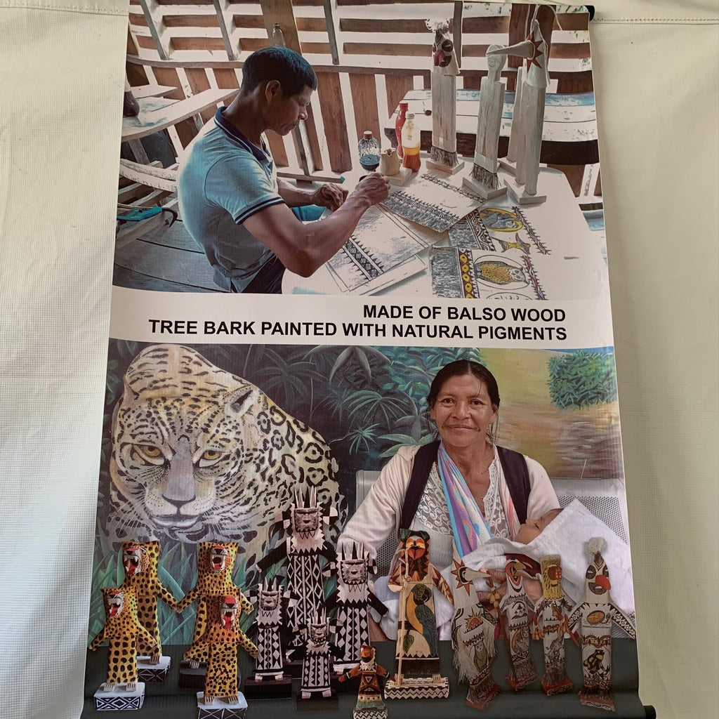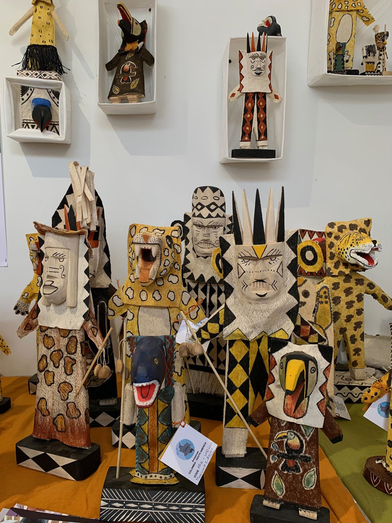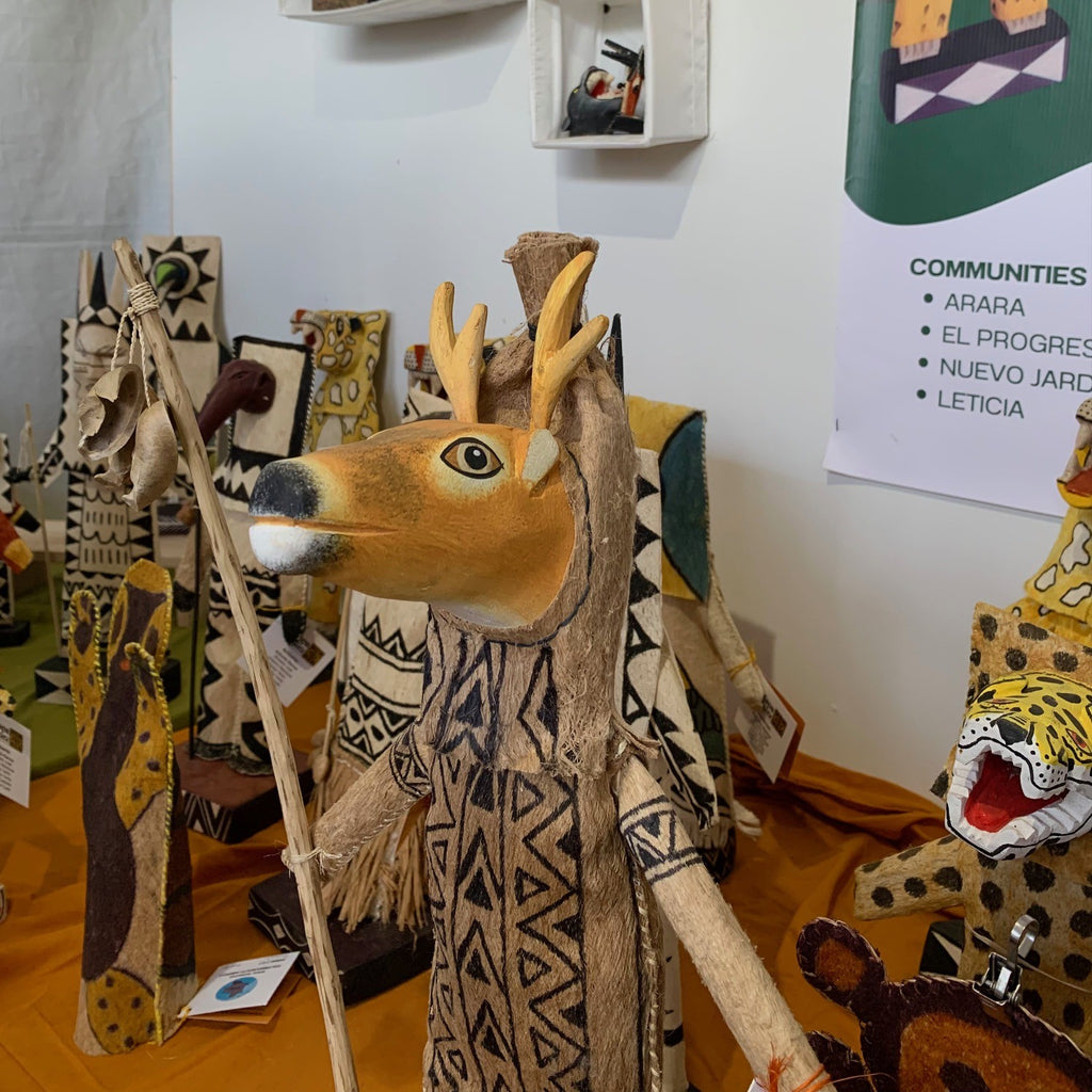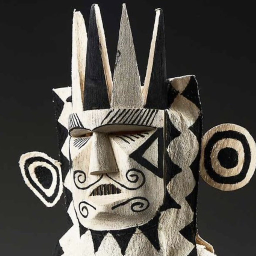 The true spirit of folk art declares a community’s existence in the world, and this is strongly represented by the Muñecos de la Pelazón, the expressively crafted figures of hand carved balsa wood and yanchama bark cloth made by the indigenous Tikuna people in the rainforests of Arara, Colombia. Participants in the actual ancient ceremony of the Pelazón, through which girls entering puberty are introduced to adult society, wear these fanciful garments with their geometric patterns and masks of leopards, toucan and monkeys. Antonia Ramos Bautista guides the design of these contemporary “dolls,” and with her entrepreneurial instinct, has fostered awareness of this phenomenal cultural tradition, whilst helping to generate income to improve the communities’ quality of life.
