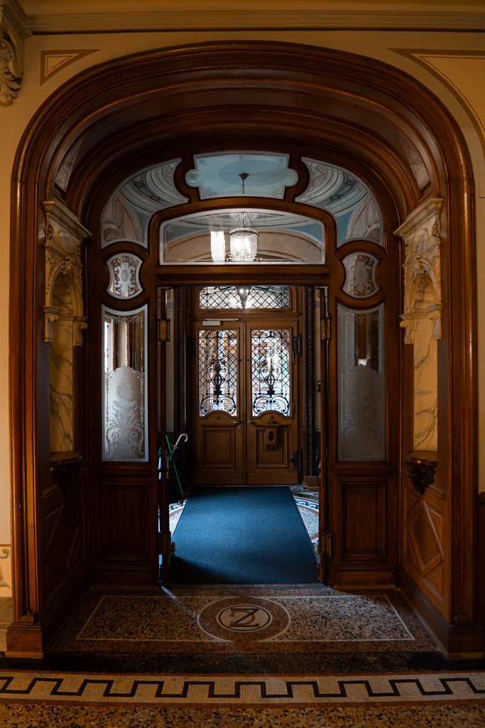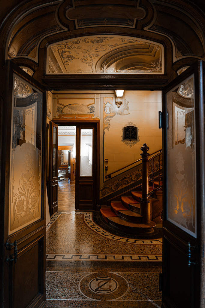 Built by architects Alfred Chiodera and Theophill Tschudi between 1883-1885, and with total creative freedom due to no shortage of funds, the villa is an eclectic amalgamation of Gothic, Renaissance, Rococo, Swiss Heimatstill and Jugendstil touches. Inside, Villa Patumbah is a masterclass in 19th-century craftsmanship and today’s skilful restoration. Upon entering the vestibule, the eye is immediately drawn to the intricate mosaic flooring and the marble-clad walls. The salon, enveloped in rich walnut panelling and marquetry, exudes opulence and gravitas, while the Damenzimmer (Ladies’ Room) captivates with its decoratively painted Rococo ceiling, lavishly embellished with cherubs and floral bouquets.