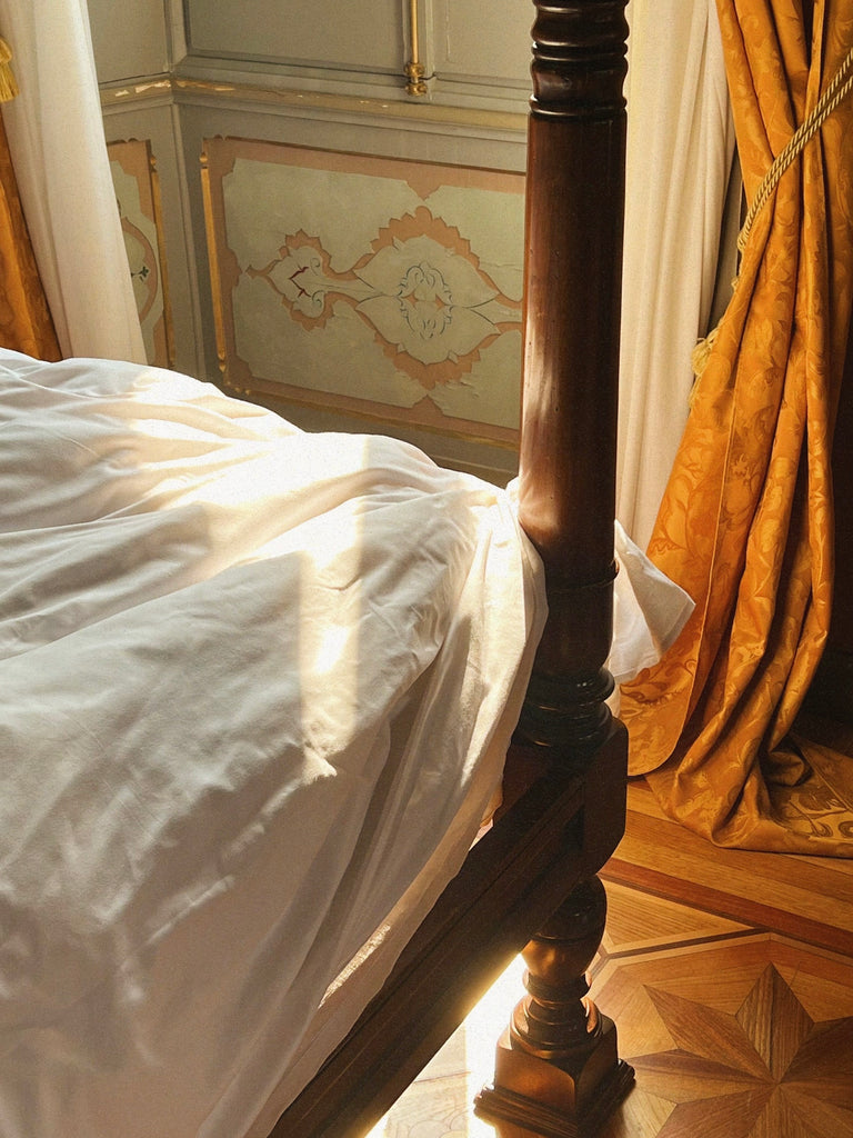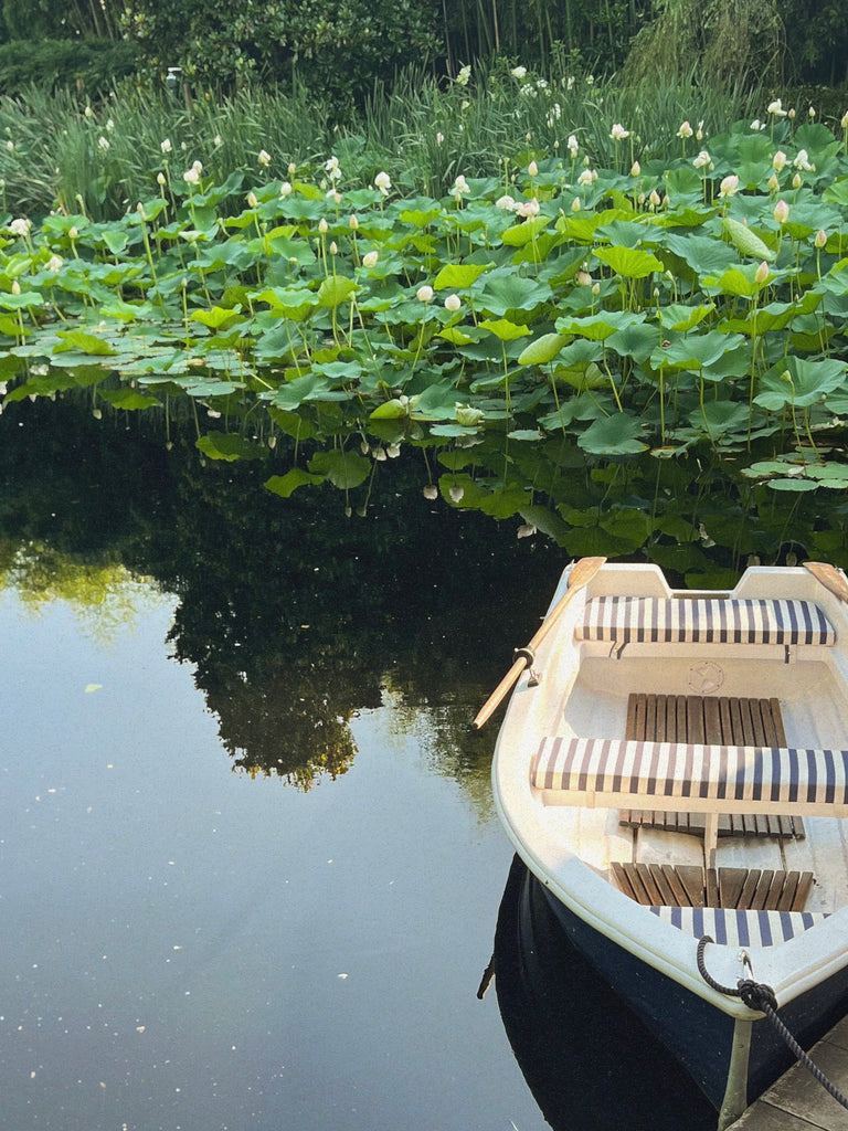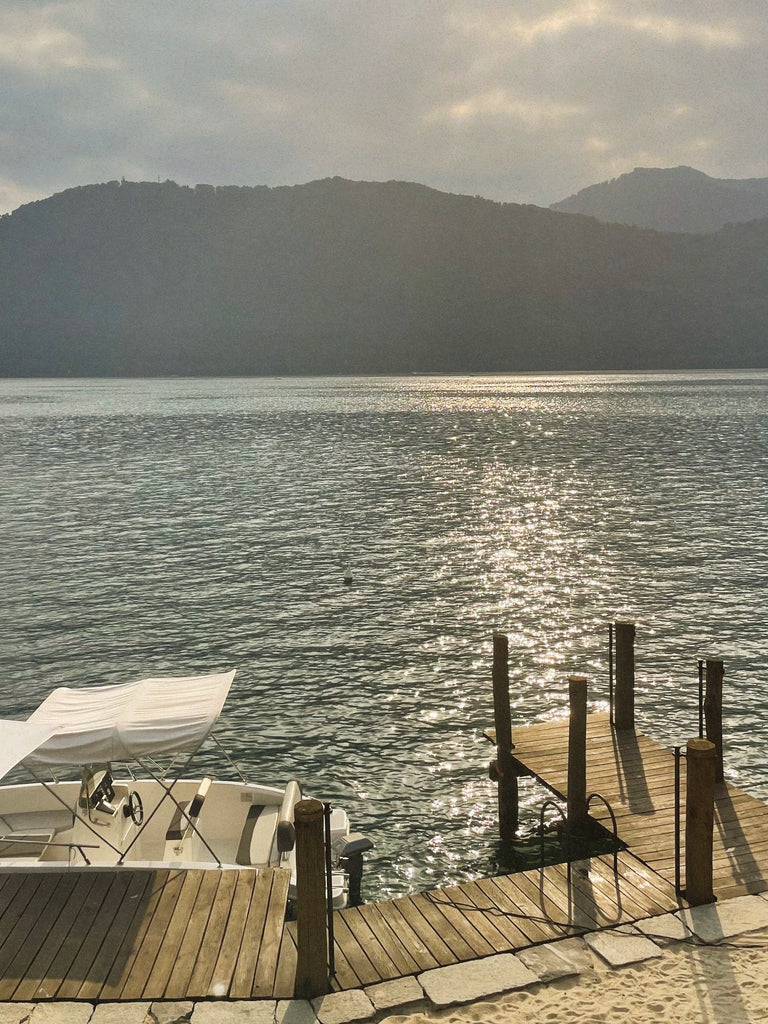 And so we head home, reluctantly. But the places stay with us: the soft, painterly quiet of La Foleia, rowing across the lotus-dotted pond, reading under the shade of old pines. In Orta, the morning light catching on golden velvet and plush bedding, our eyes drifting across ornate painted carvings. And at Laqua, a contemporary clarity where simplicity becomes the luxury, and every line feels intentional. In a summer shaped by detours, this quiet choreography of interiors and landscapes revealed itself as the perfect destination.