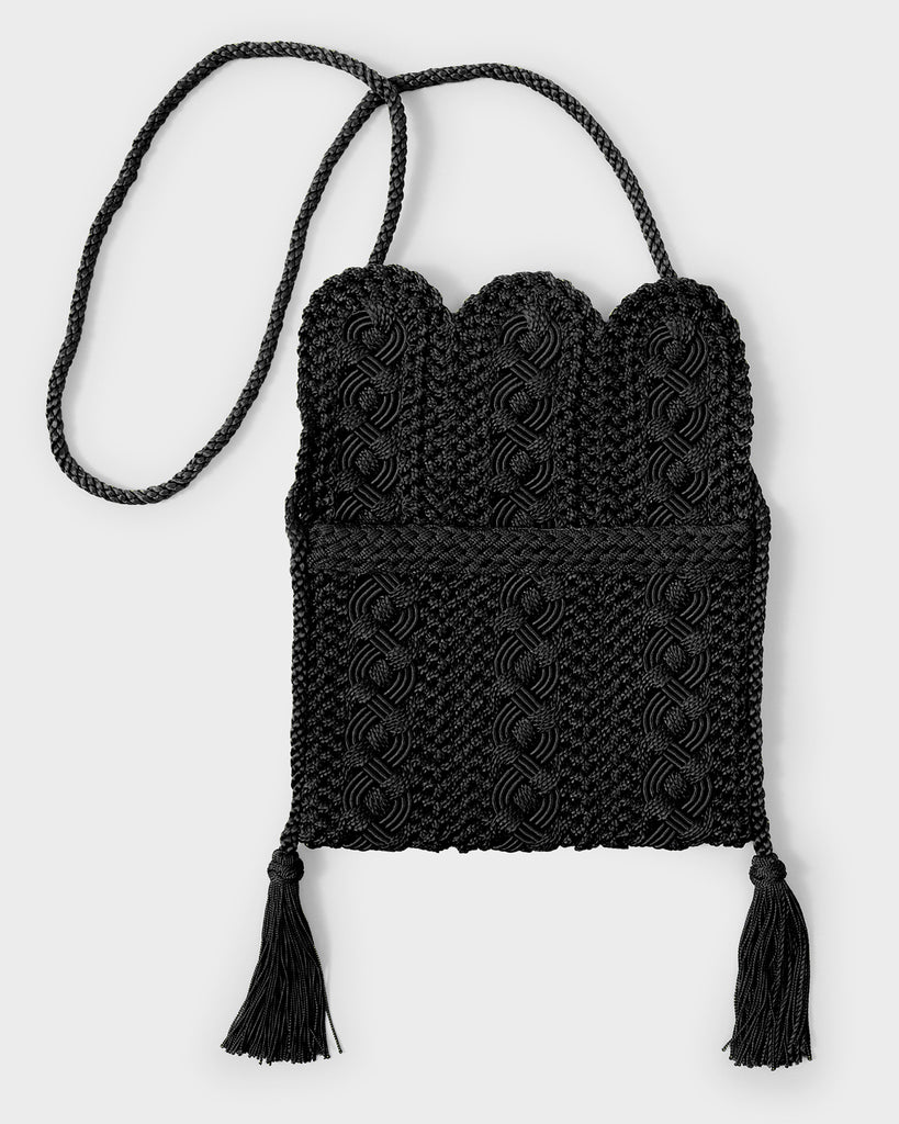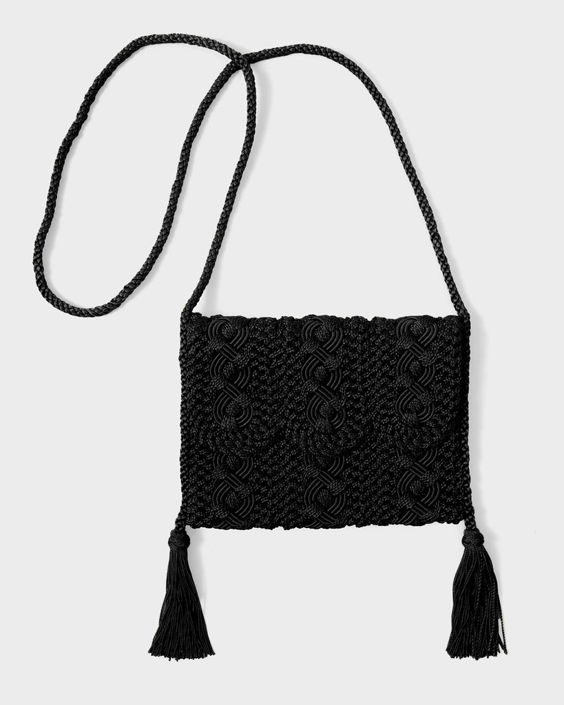 Handmade in Morocco for Jardin Majorelle and inspired by the iconic designs of the late Yves Saint Laurent, this silk braided shoulder bag is crafted from sabra silk yarn using a traditional passementerie weaving technique. Available now in five colors: blue, orange, fuchsia, green and black.