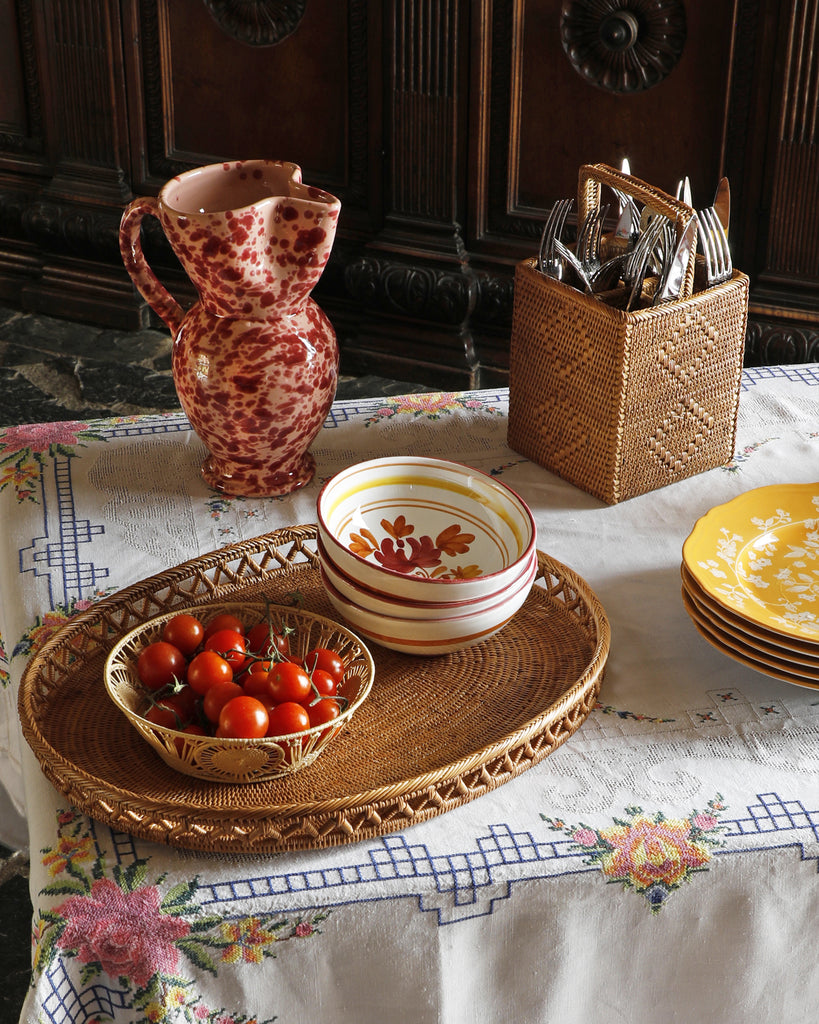 Ceramic making in Puglia has flourished in Italy since antiquity. Known for its ‘schizzato’ speckled paint style, Puglia’s splatterware is considered part of the region’s rich heritage. Our Speckled Collection is an homage to this cultural tradition, hand-painted in Puglia in a variety of vibrant colors.