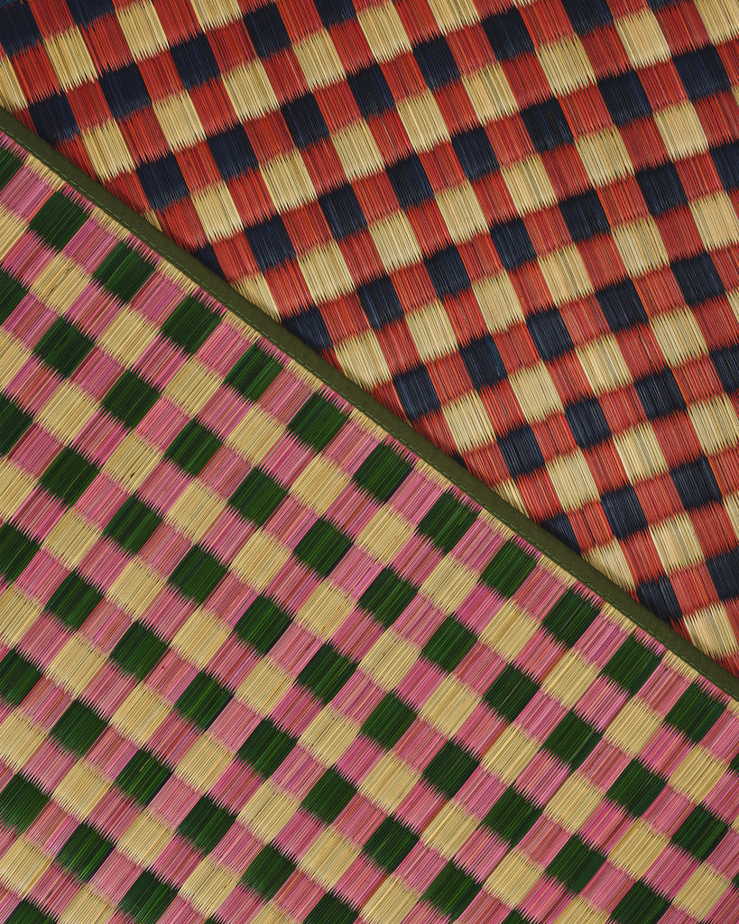The Capri Placemat is handwoven in natural fibers with rich interlaced tones of red and blue. This joyful checkered pattern will brighten any table setting.
