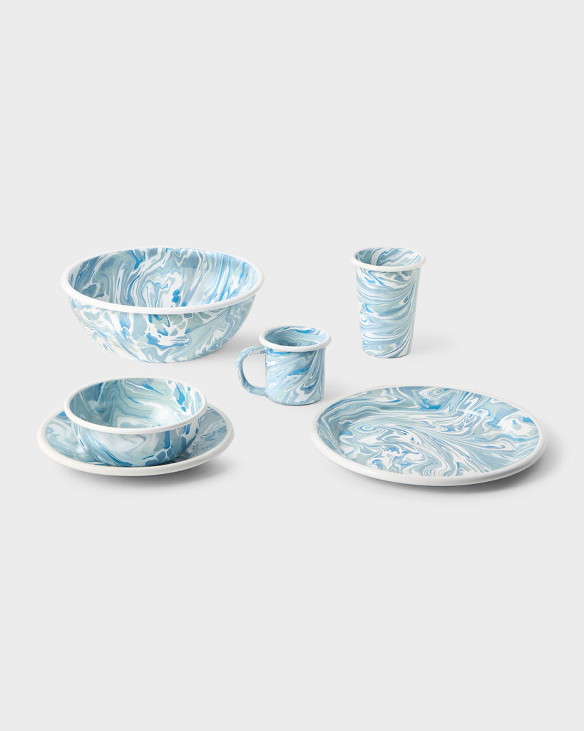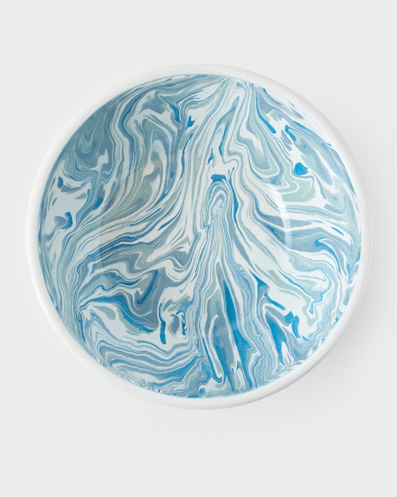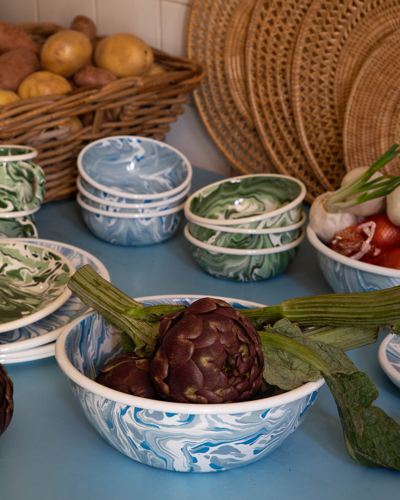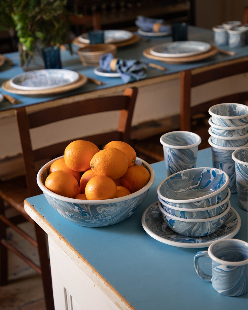 Playful, durable and versatile, the Marbled Enamel Serving Bowl finds perfect use whether at home in the kitchen, the garden, at a picnic or at the beach. Its porcelain-infused marbled designs are unique, adding to their distinct charm.