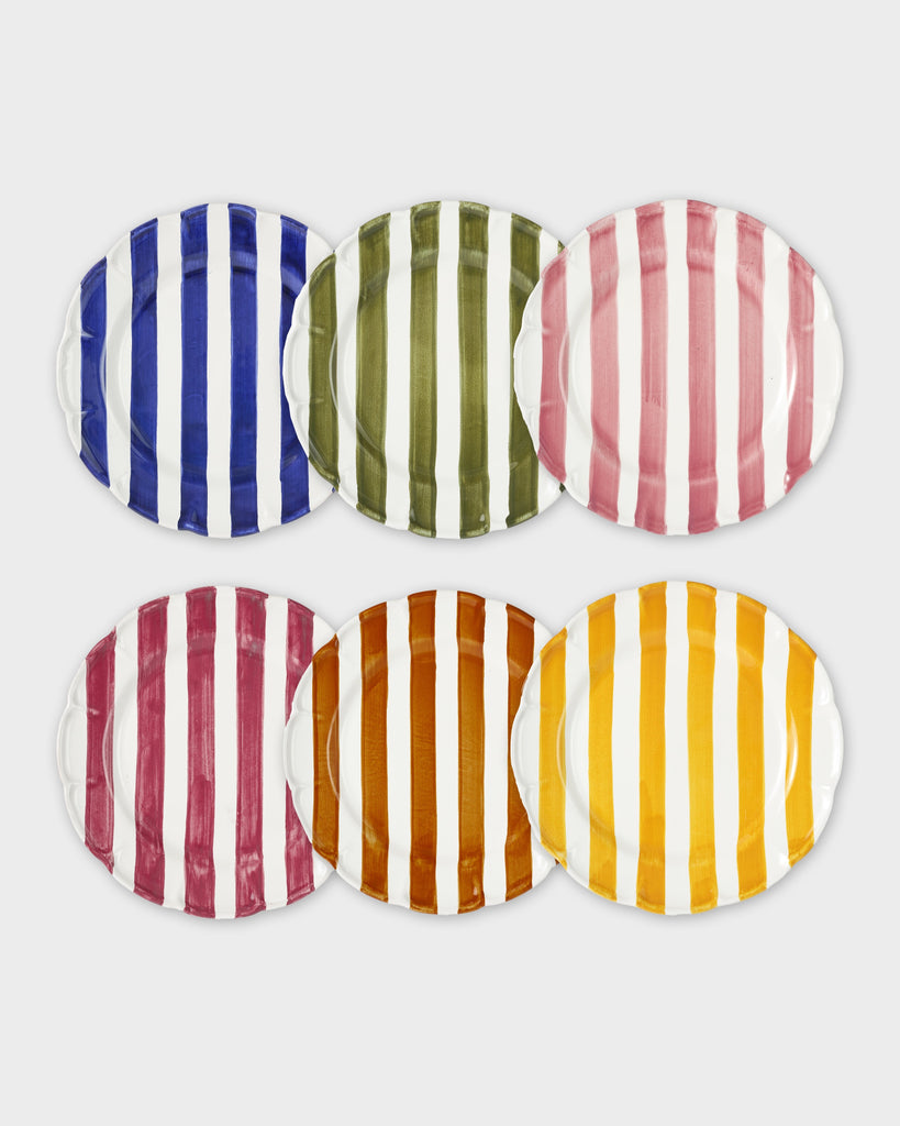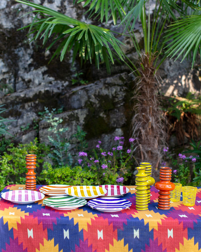Handcrafted in Umbria, the Righe plate is a playful addition to your table. Mix and match colors to create a vibrant table setting. The colorful stripes will allow you to combine these plates with any items you may want. From a simple white tablecloth to a fun floral one, the possibilities are infinite.