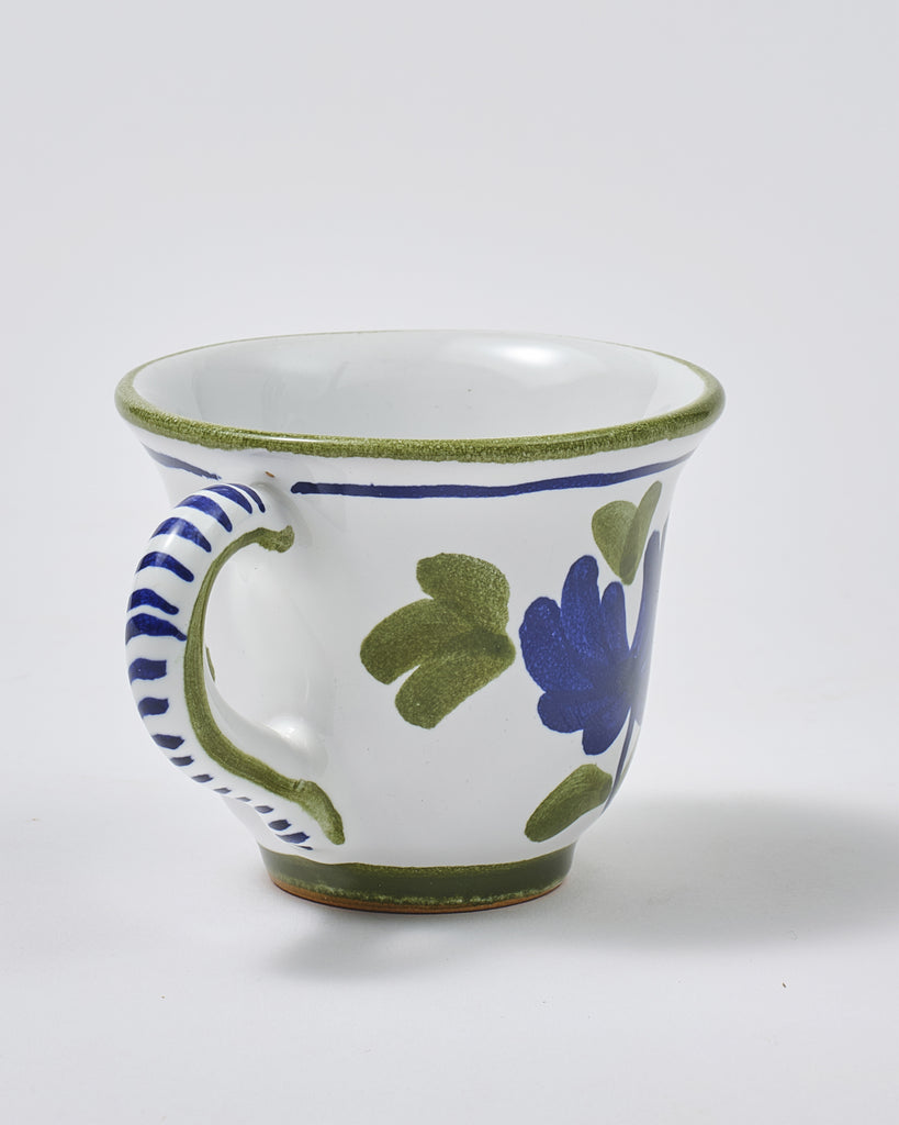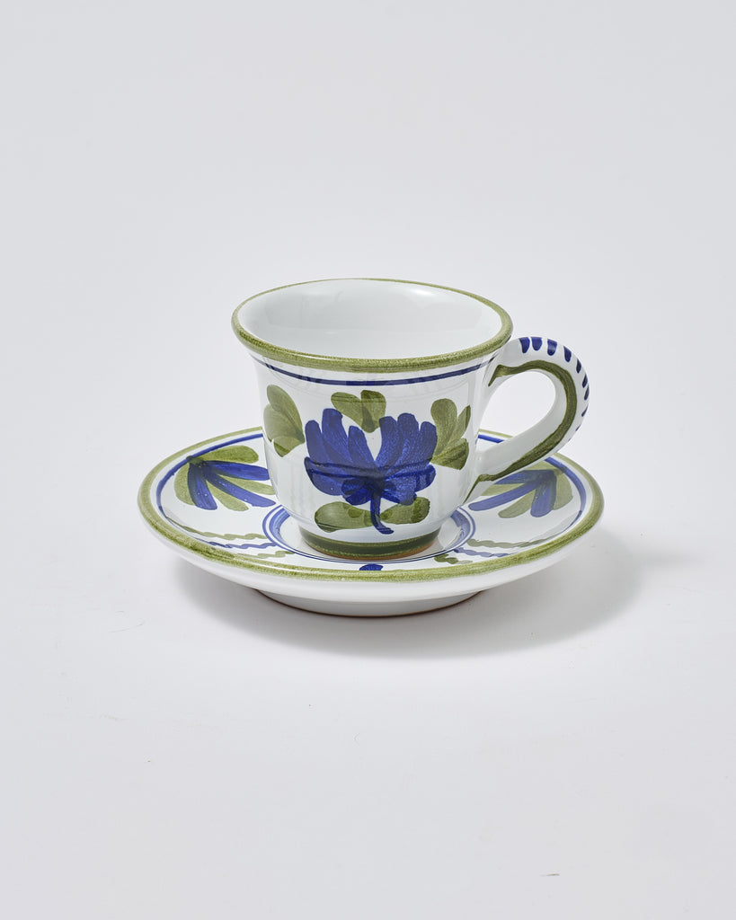 We love this quintessential rustic Italian espresso and saucer set. Hand painted by artisans in Umbria, the Blossom espresso cups will add a touch of joy to your everyday routine. Also available in burgundy and yellow, we mix and match colors to suprise and delight our guests. Complete your Blossom collection with matching sets of mugs, espresso cups, pitchers, dinnerware and more.