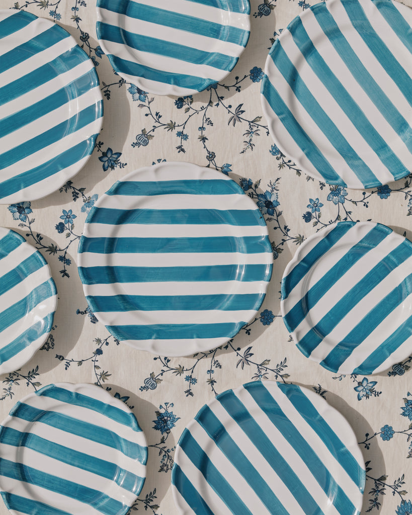 Handcrafted in Umbria, the Righe plate is a playful addition to your table. Mix and match colors to create a vibrant table setting. The colorful stripes will allow you to combine these plates with any items you may want. From a simple white tablecloth to a fun floral one, the possibilities are infinite.