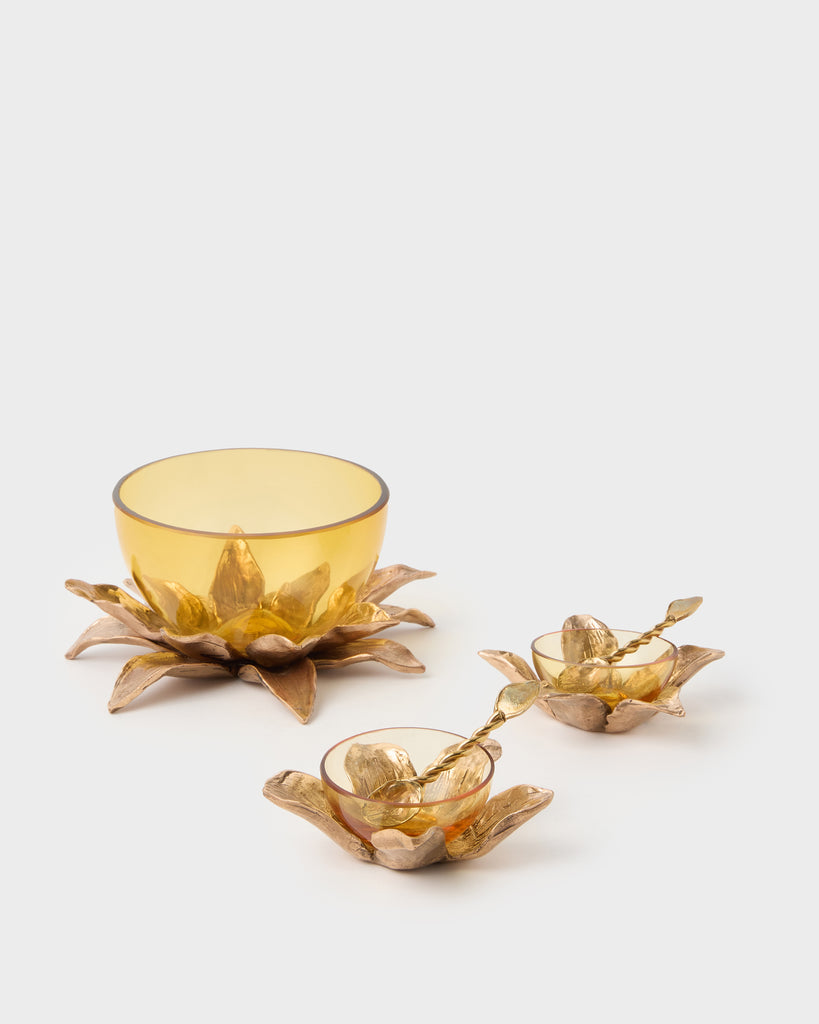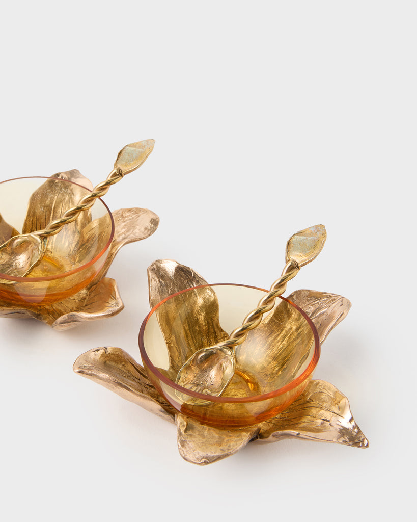 Italian designer and maker, Osanna Visconti, casts exquisitely detailed jewellery and objects, both functional and decorative, from natural bronze using the lost wax technique - an ancient method that Greek and Roman artisans have been using since bronze was discovered 3000 years ago. The Dalia Bronze Salt & Pepper set is a timeless piece inspired by nature and will surely be a lasting treasure. Discover Osanna's collection of bronze works including candlesticks, bowls, serving spoons, tea spoons and more.