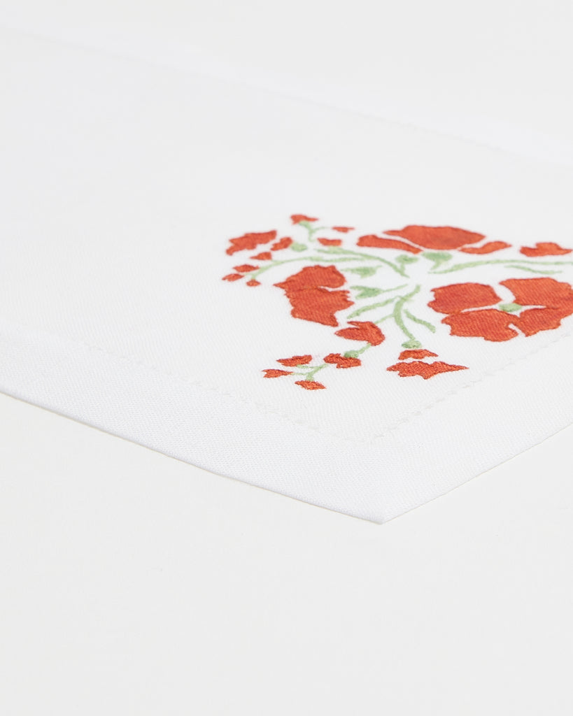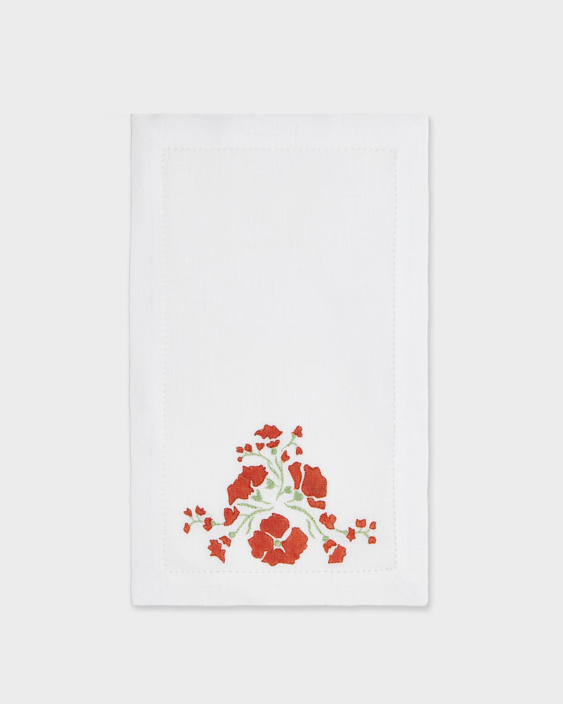 Houria Tazi Poppy Hand-Painted Linen Cocktail Napkin is made to order.