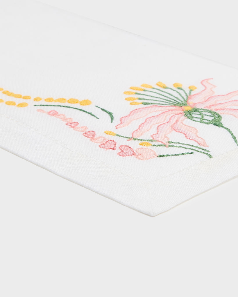 Combining traditional hand-painting with delicate embroidery, each piece is infused with an artisanal elegance that elevates any dining experience. Adorned with exquisite floral motifs, it is a timeless addition that brings refined sophistication to your table setting.