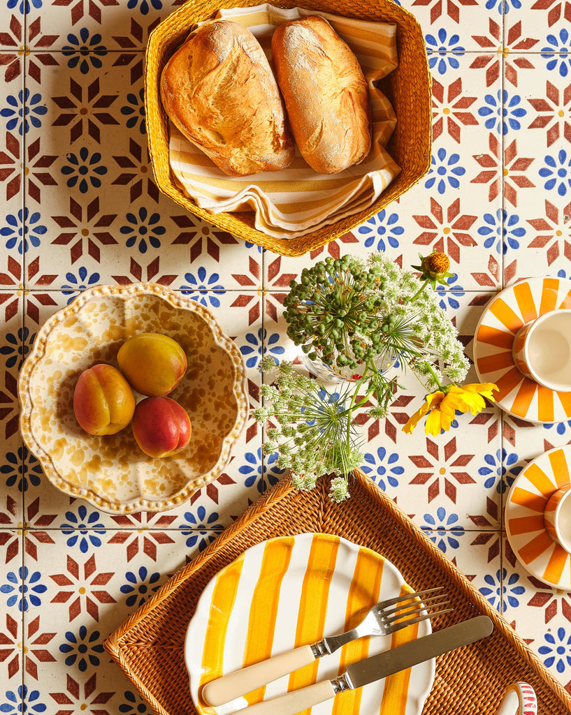 Ceramic making in Puglia has flourished in Italy since antiquity. Known for its ‘schizzato’ speckled paint style, Puglia’s splatterware is considered part of the region’s rich heritage. Our Speckled Collection is an homage to this cultural tradition, hand-painted in Puglia in a variety of vibrant colors.