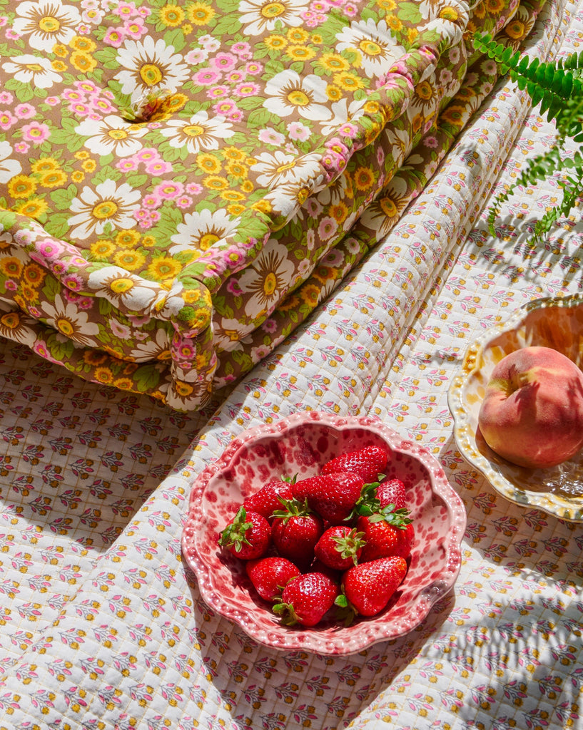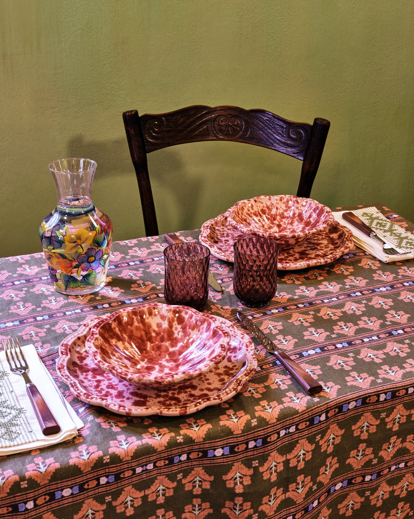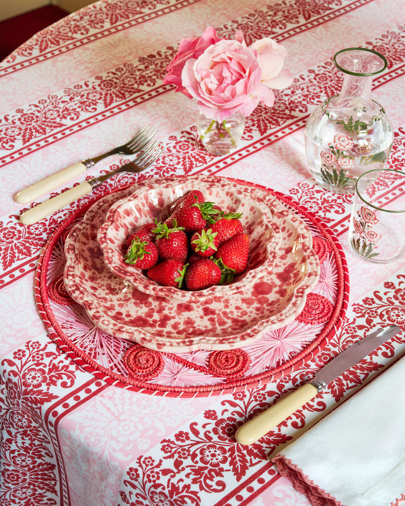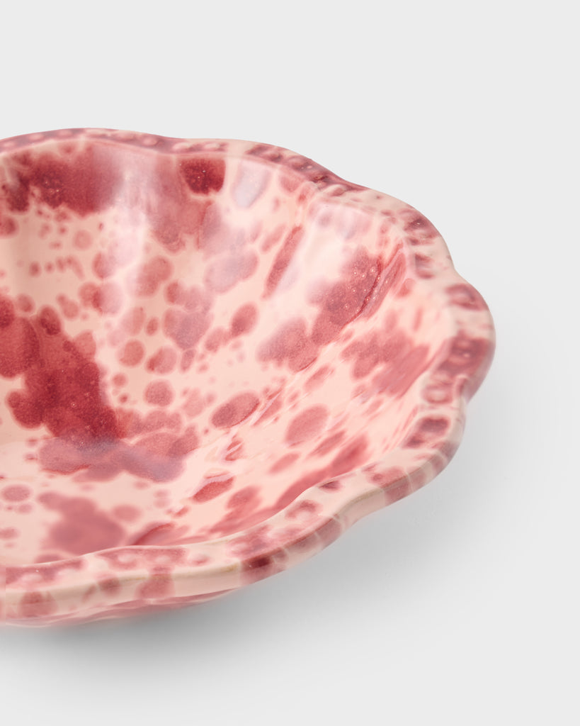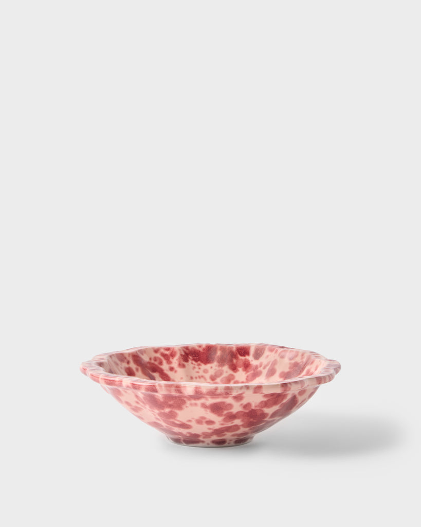 Reimagined in fresh colorways, our Speckled small bowl is hand-painted in Puglia with a scalloped edge and decorative, undulating rim. We love using these versatile bowls to serve everything from fruit and nuts, to irresistible side dishes. Pair with our patterned Cosima tablecloth and other Speckled pieces to bring vibrant pops of color into an alfresco dining setting.