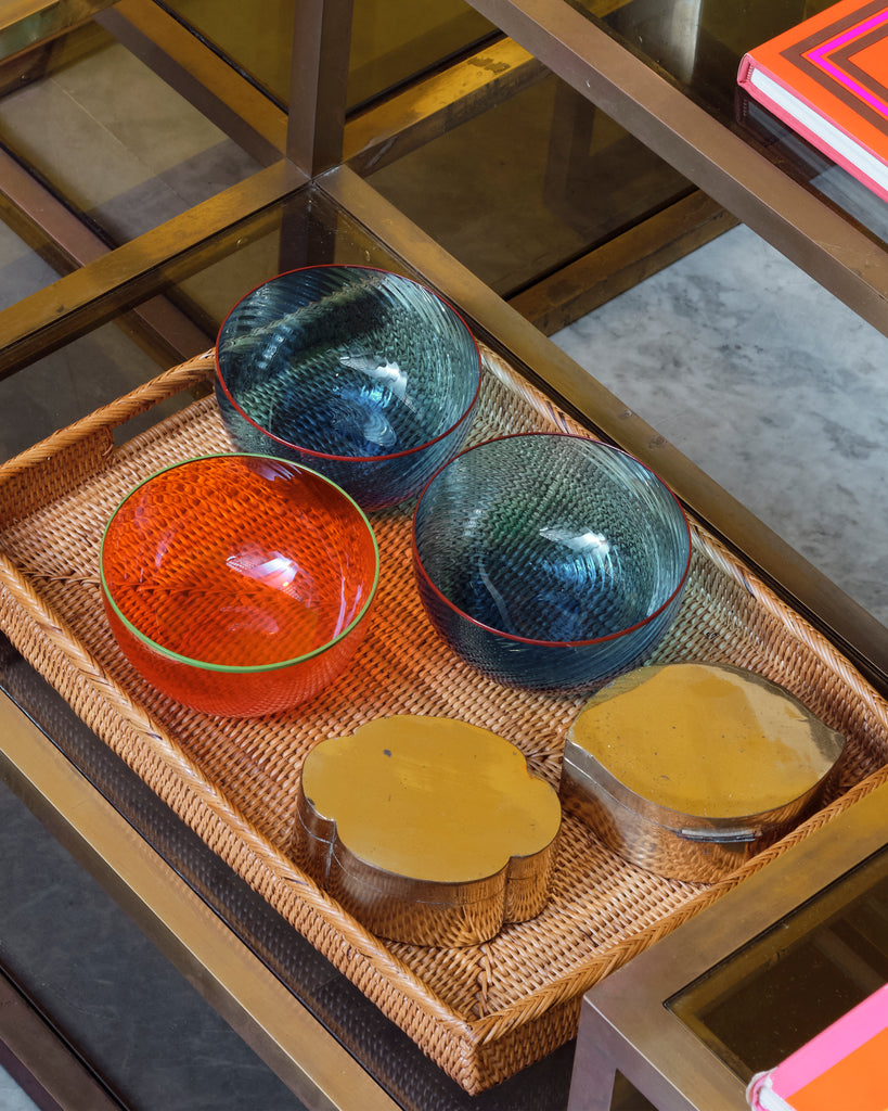 David Hicks achieved global renown for his revolutionary and bold use of color. Inspired by Hicks, our vibrant Salon Murano Glass Bowl in Sea Blue is handblown on the Venetian island of Murano, where master Italian glassmakers have practised their craft for centuries. Its textured exterior and rich hue make it a great addition to any dining setting. Mix and match with other colors in the range for an eye-catching display.