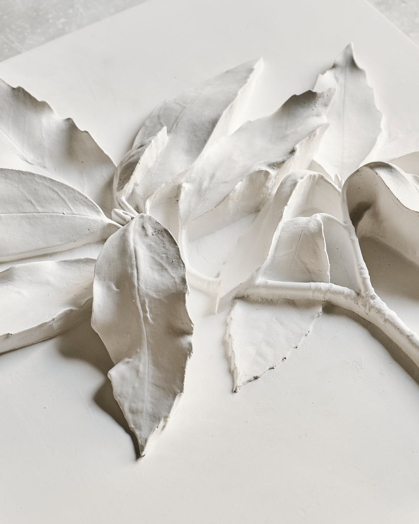 Each cast is taken from an archival mould, poured in fine plaster, then carefully released, trimmed, and finished by hand to a luminous matte surface with crisp relief. Subtle variations and delicate tool marks reveal the maker’s touch. It brings a quiet note of classicism to contemporary interiors—a collectible that lives at the intersection of art, design, and decorative craft.
