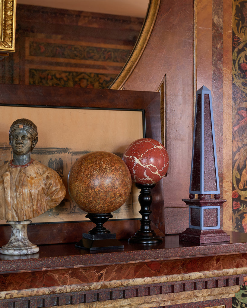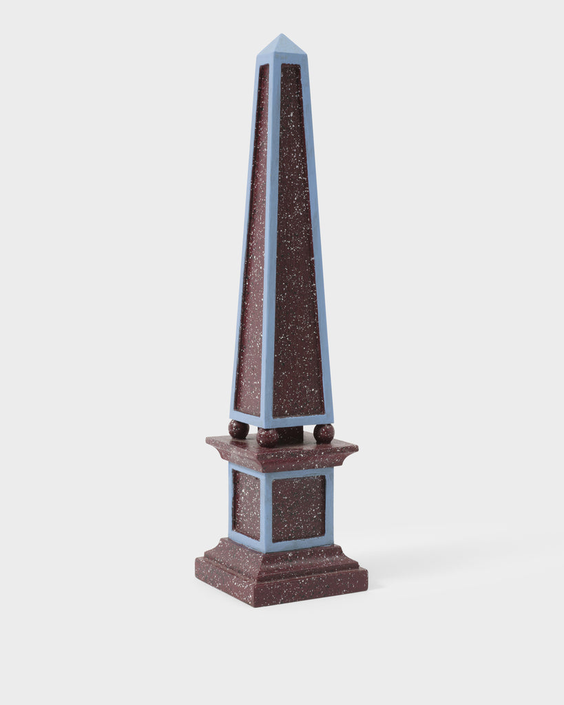 Elevate your space with this exquisite Faux Porphyry Obelisk, a masterpiece of hand-painted craftsmanship. Meticulously crafted in Florence, each obelisk is skillfully painted to mimic the luxurious appearance of genuine porphyry stone. The deep, rich tones of the faux porphyry, highlighted by speckles and subtle texture, lend an air of sophistication and timeless elegance. Perfect as a statement piece for desks, bookshelves, or mantels, this obelisk combines classic architectural inspiration with the unique artistry of Florentine handcrafting. A refined addition to any interior, it captures the charm of antiquity while showcasing the beauty of modern artistry.
