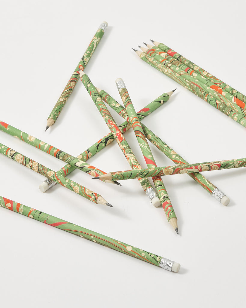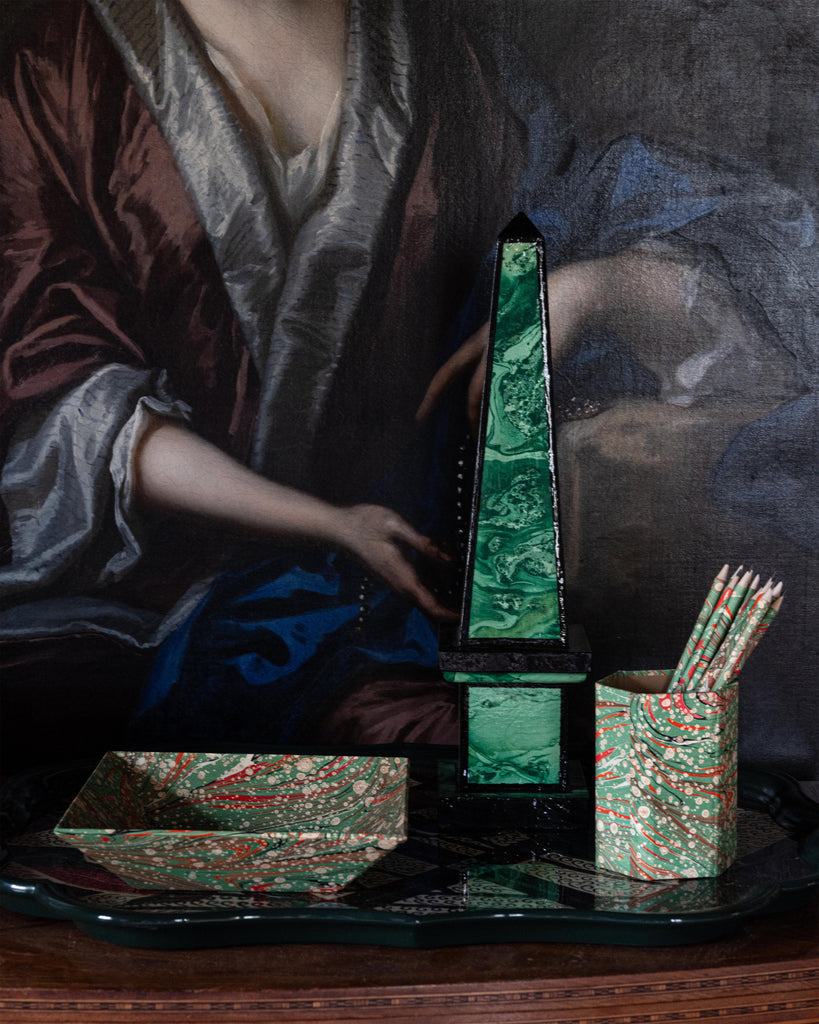 The Marbled Tissue Box Cover is handmade in Italy by Venetian artisans using marbled paper—a technique steeped in history and known for its mastery of abstract decoration. The marbled pattern, created through the meticulous combination of pigments, oils, and water, renders each pencil a unique work of art, impossible to replicate exactly. Available in four beautiful colours: yellow, green, light blue and orange.