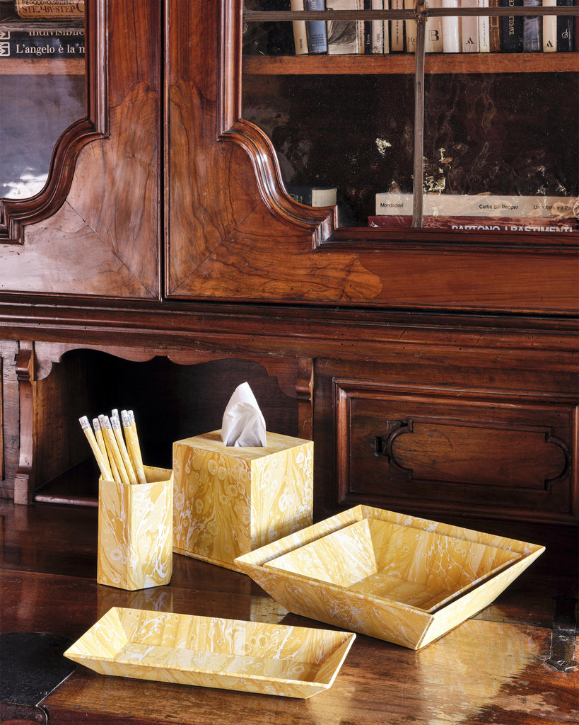 Marbled Tissue Box Cover, Yellow