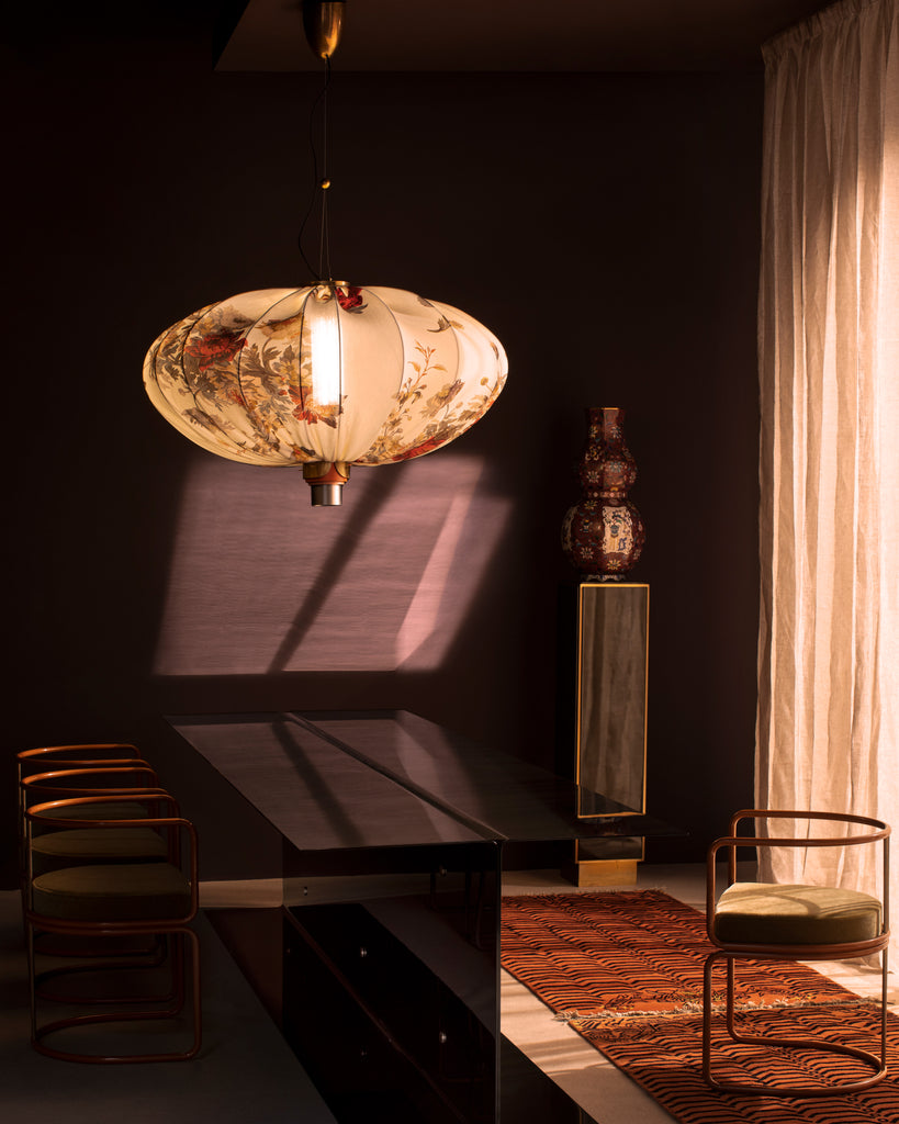 Dimoremilano Oriente A Printed Silk Ceiling Lamp, Large is made to order.
