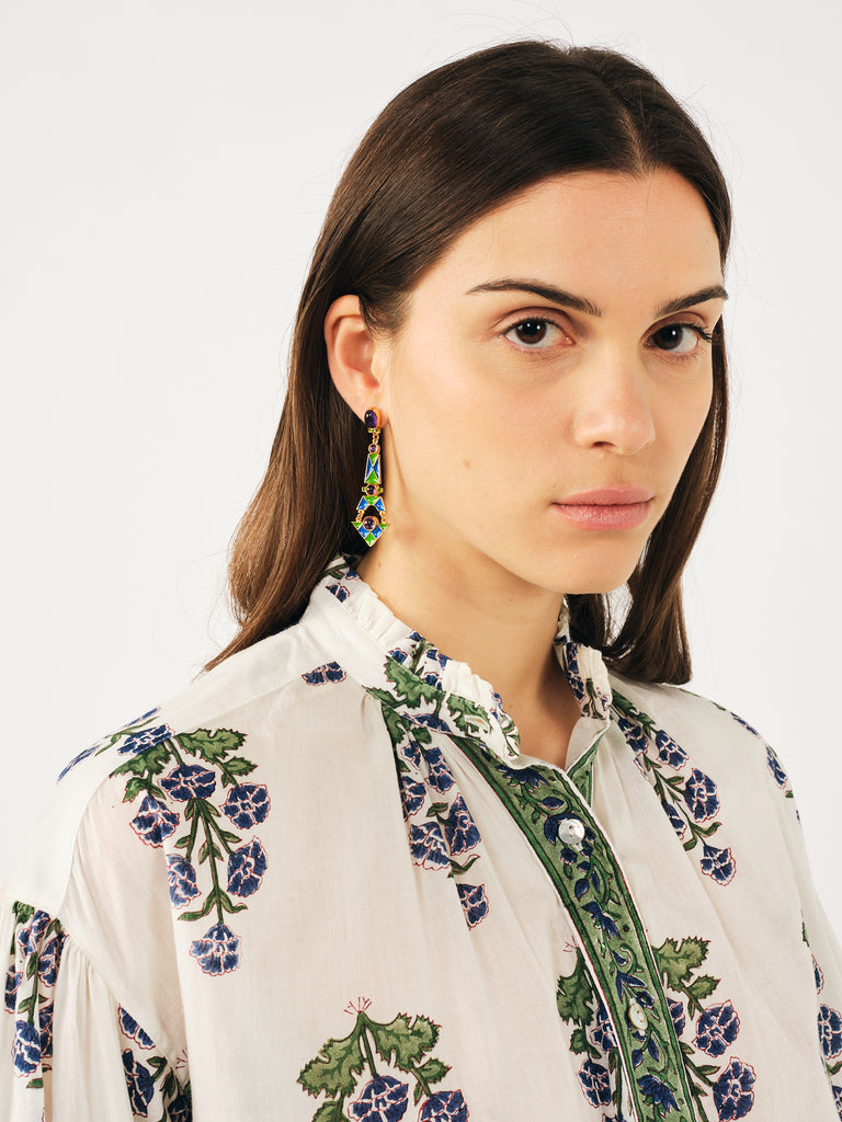 Hand-crafted with care in the heart of Rome, Percossi Papi is a treasure trove of Italian artistry and style. Since 1968, the atelier has crafted beautiful decorative jewellery inspired by ancient designs and traditional techniques. Our collaboration sees three exclusive designs featuring gold-plated sterling silver and embellished with intricate cloisonné enamels, 18-karat gold studs, cultured pearls, precious and semi-precious natural gemstones. These pieces are strikingly beautiful and original.