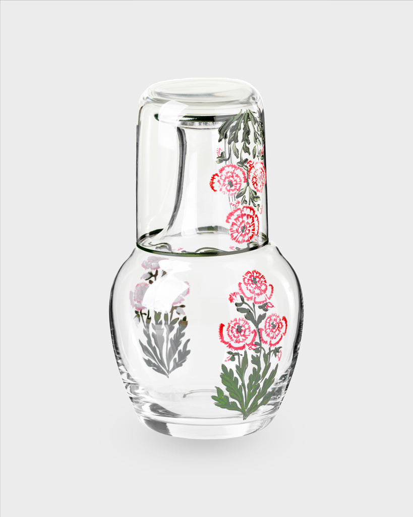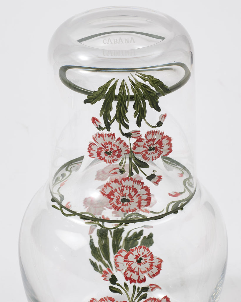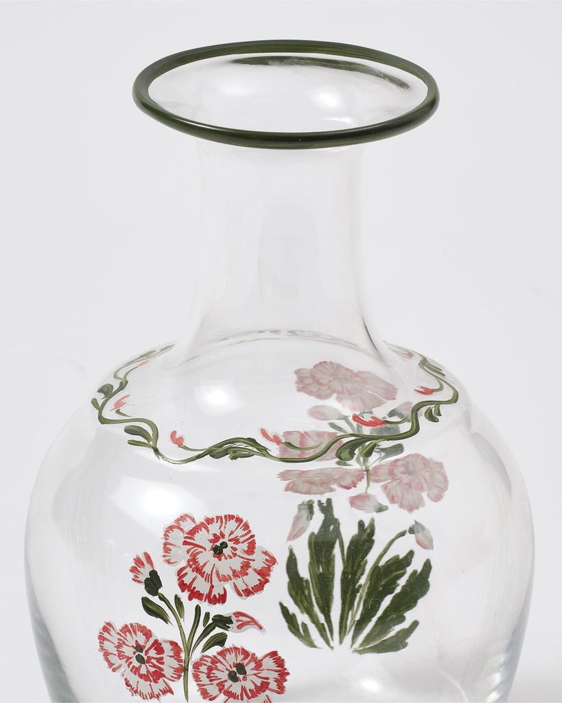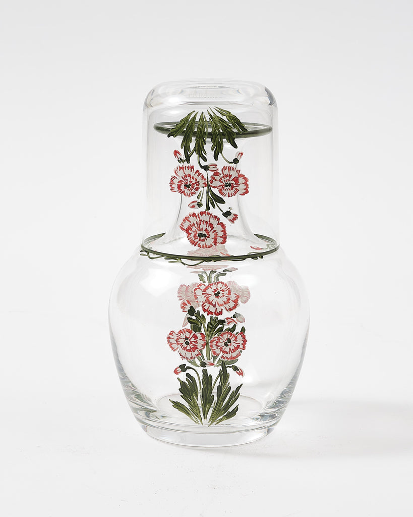 This delightful glass carafe is handblown and hand-painted on the Venetian island of Murano, where master Italian glassmakers have practised their craft for centuries. Its elegant yet classic form is adorned with delicately painted pink flowers.