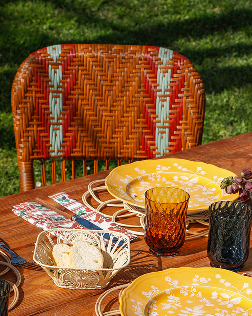 A special edition masterpiece, the Bonacina x Cabana Sienna chair, celebrates a shared love of artisanship and heritage craft. The chair features a powder-coated aluminium structure handwoven with Outdoor material, conceived for both indoor and outdoor use. With a Cognac finish and a two-toned fishbone weave in Cherry and Eucalipto, the Cabana x Bonacina Sienna chair is elegant yet practical. Removable cushion padded with Dryfeel and Outdoor fabric cover.