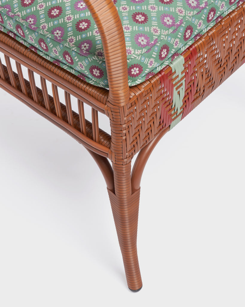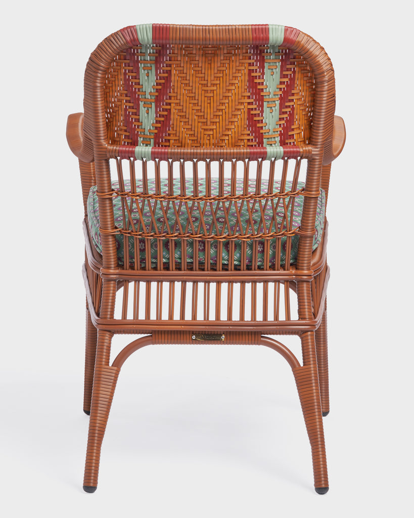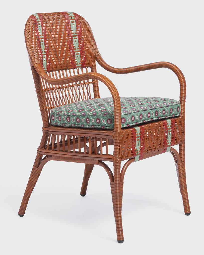 This exclusive Bonacina x Cabana edition features a handwoven frame in a refined fishbone weave. Paired with a Schumacher Larissa Jade cushion, the chair offers a luxurious pop of color and unmatched comfort, seamlessly blending classic Italian craftsmanship with modern style for dining spaces. Removable cushion padded with Dryfeel and Outdoor fabric cover.