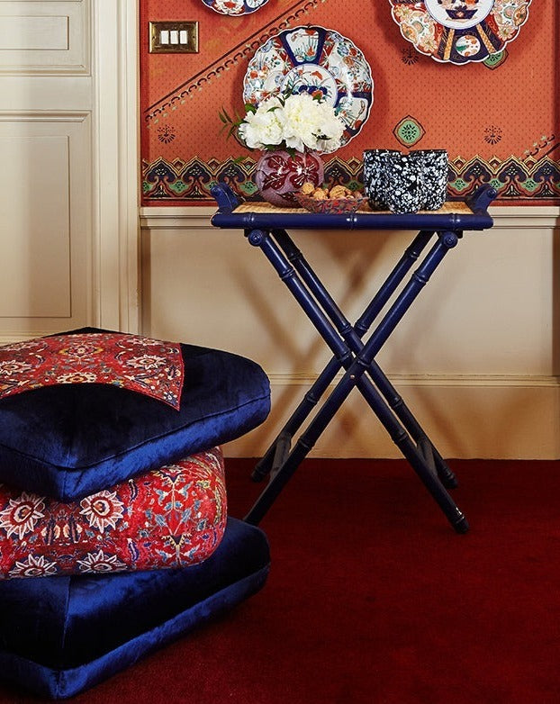 Exclusively produced by Cabana in collaboration with the legendary Italian house of Dedar, these luxurious poufs have been created after an original design by Renzo Mongiardino, and draw inspiration from traditional Persian designs. They are covered in the highest quality Dedar velvet and incorporate the signature Cabana Persian pattern. Their sophisticated yet relaxed silhouette recalls the rich history of Ottoman interiors and brings a touch of sumptuous luxury to any salon, lounge, or bedroom.