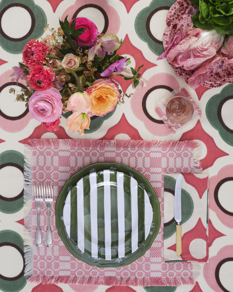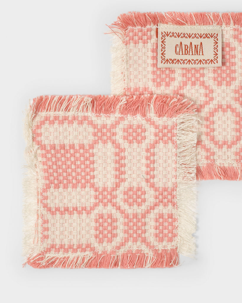 A nod to classic Italian rusticity, our Lecce coasters feature a geometric repeat with fringed edges. Each coaster is handwoven by local artisans in Puglia using traditional cotton and colors that are both elegant and practical. Incorporate them into a spring table and pair with our Lecce placemat to depict the essence of Italian charm. Sold as a set of two.