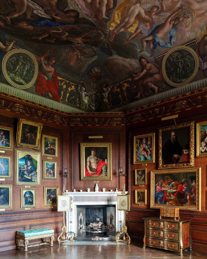 Designed by Cecil himself, in consultation with the Dutch Renaissance architect and painter Hans Vredeman de Vries, the architecture and interiors at Burghley reflect a mix of contemporary fashionable influences. The house’s facades are each markedly different, with a striking and ornate Gothic gatehouse beneath a roofline of cupolas and obelisks, and with French and Italian styles visible in the windows and pilasters. And inside, where the State Rooms house remarkable collections of furniture, textiles, and Old Master paintings acquired over the centuries, Cecil’s Gothic-style Old Kitchen remains alongside the magnificent Renaissance staircase and Italianate fireplace in the Great Hall.