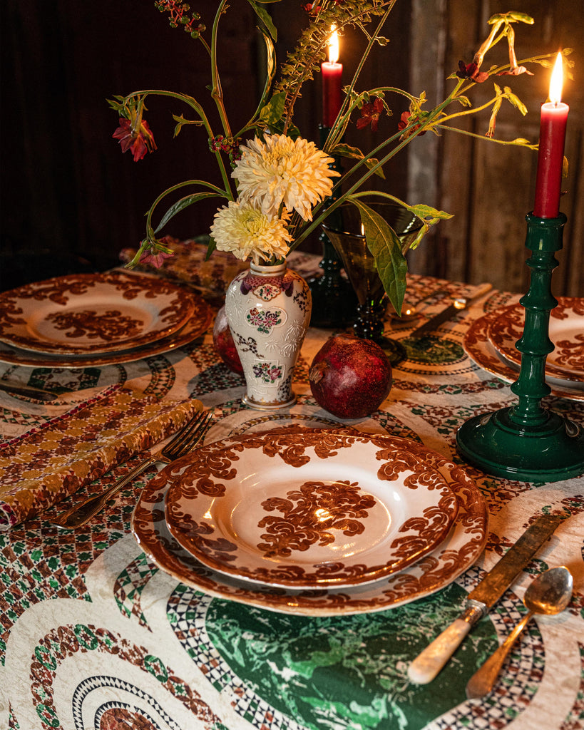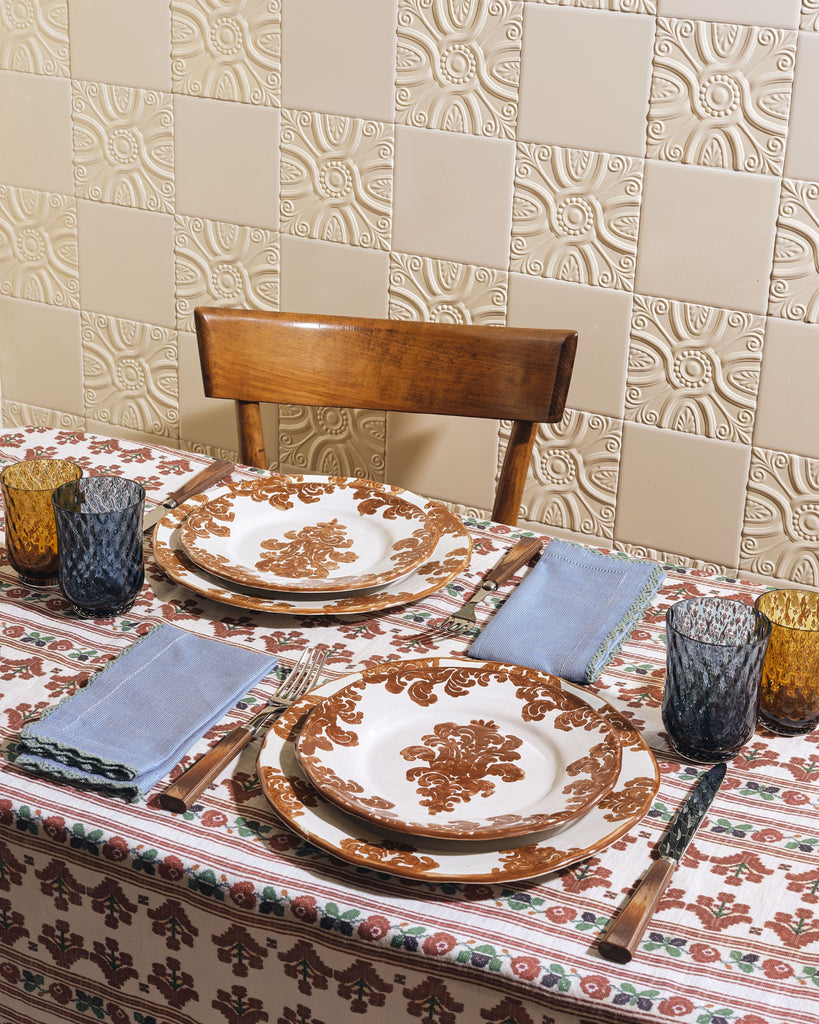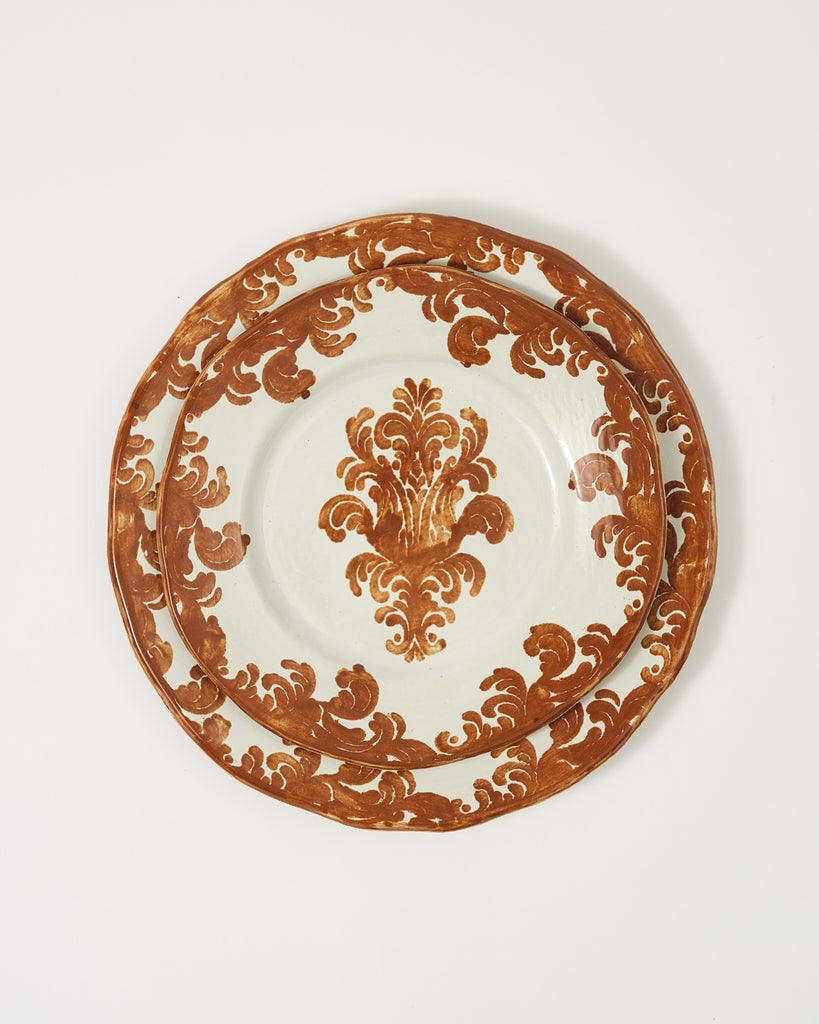 The Damask Dessert plate is handcrafted by Zsuzsanna Nyul, inspired by her Hungarian heritage and designed exclusively for Cabana.