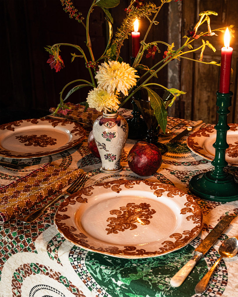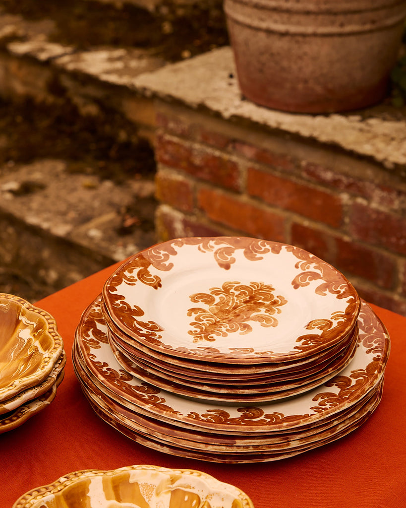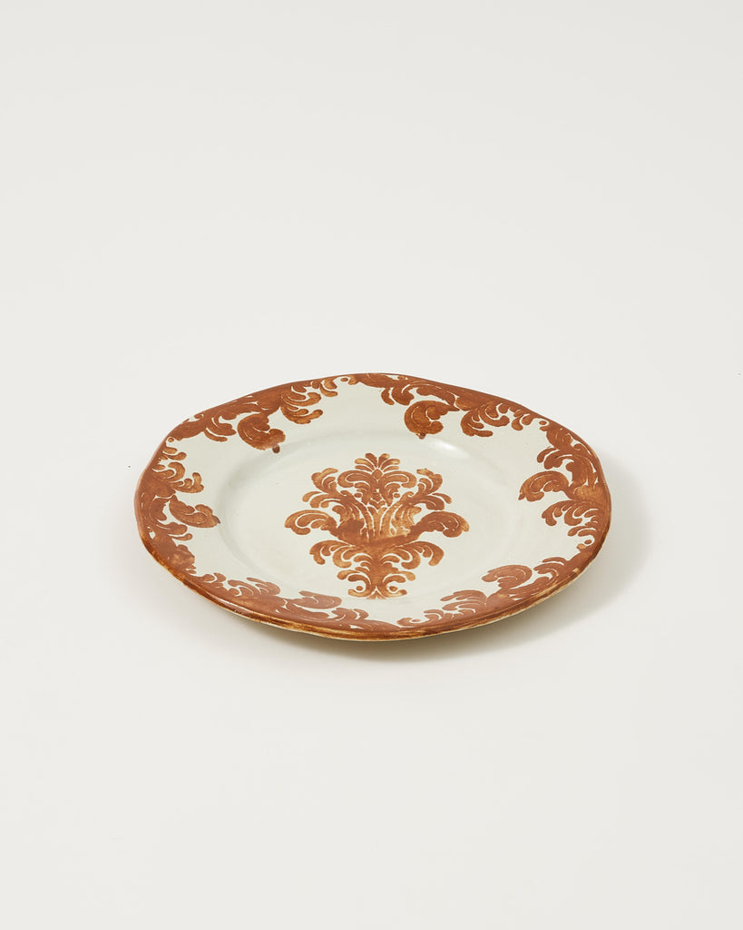 The Damask Dessert plate is handcrafted by Zsuzsanna Nyul, inspired by her Hungarian heritage and designed exclusively for Cabana.
