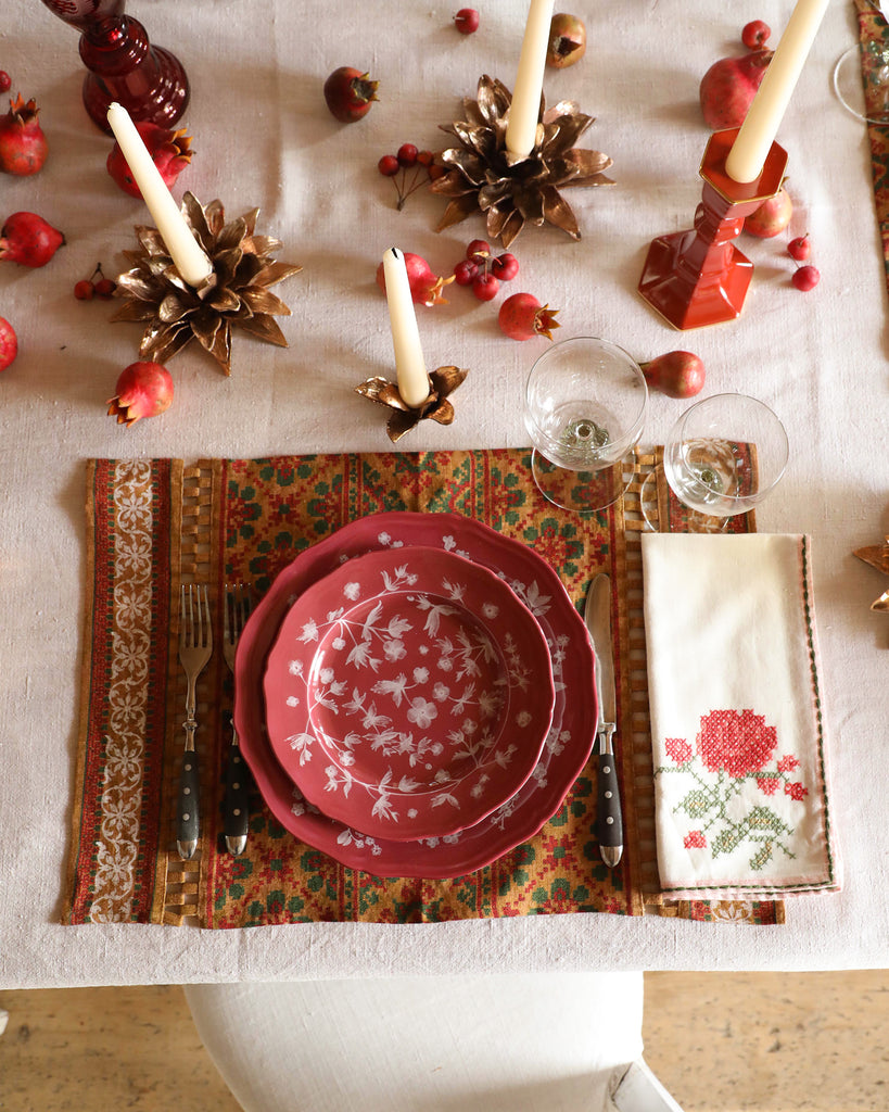 Add a touch of artisanal elegance to your table with the D'Ascoli Carpathia Placemats. Crafted from 100% pure linen, each placemat in this set of four showcases intricate hand embroidery, bringing rich, vibrant colors to life. Inspired by traditional patterns, the design features an intricate arrangement of geometric and floral motifs in warm hues, lending an old-world charm to contemporary dining. Perfect for both everyday use and special occasions, these durable, high-quality linens will elevate any table setting with a hint of sophistication and timeless craftsmanship.
