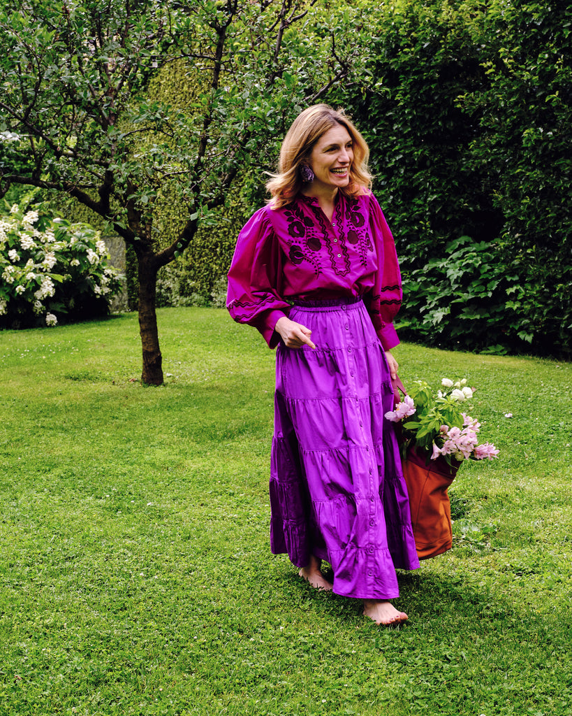 Its vibrant berry hue makes it a standout for everyday wear or travel, pairing easily with neutral tops or matching tones. Whether worn casually or dressed up, the Kira Skirt brings effortless style with a handcrafted touch.