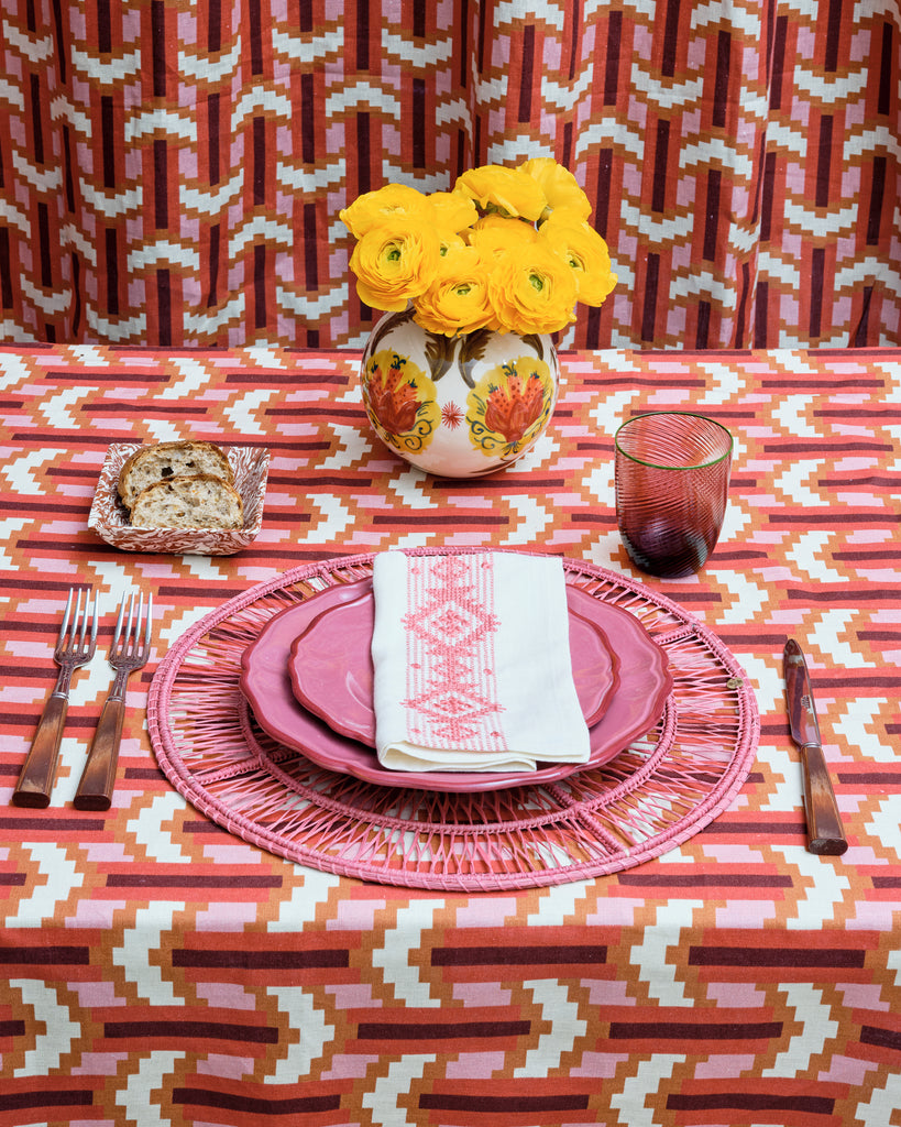 Inspired by traditional Vishyvanka embroidery, the Folklore Embroidered Napkins are handmade in Ukraine, featuring one striped border that frames the 100% linen napkin. Slight variations in finish or appearance are not considered imperfections, but rather the mark of a unique handmade item.