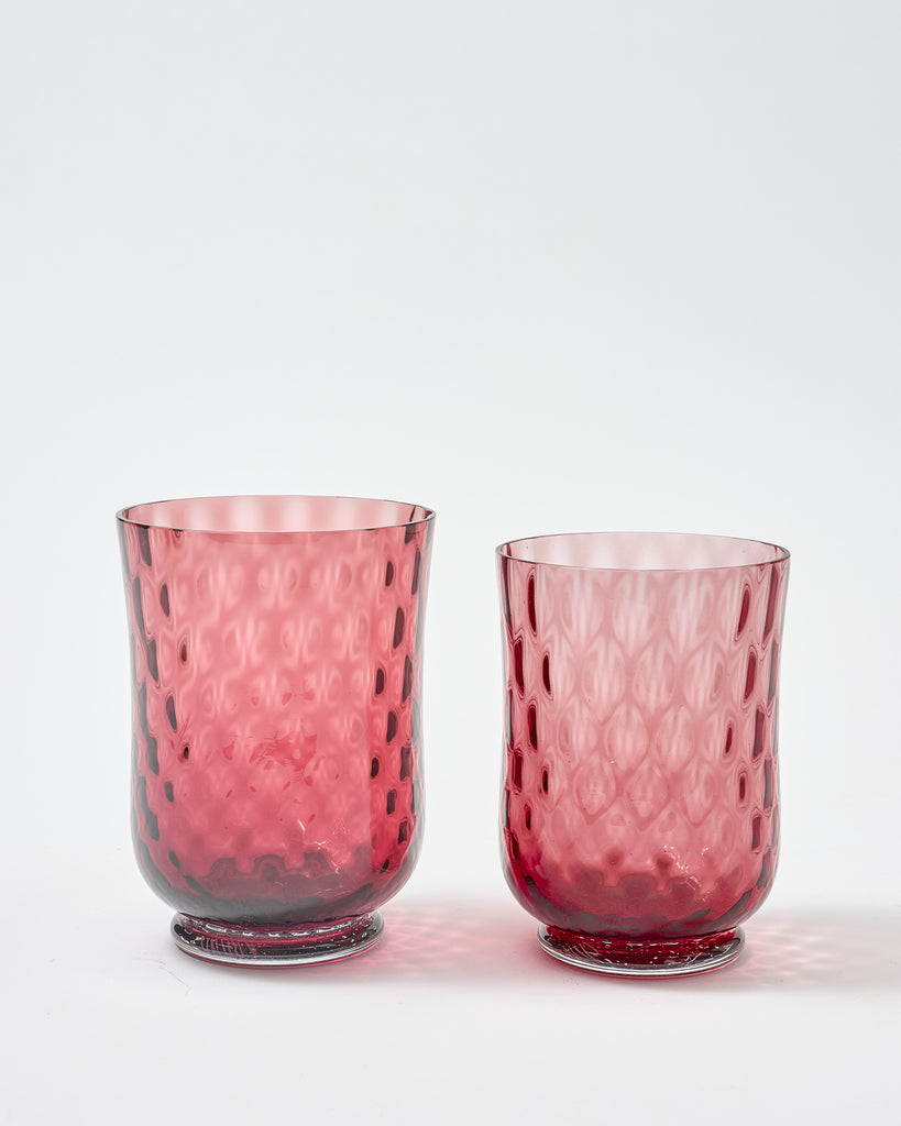 The newest addition to Cabana’s Balloton line, the pink Murano glass is crafted by hand on its namesake Venetian island, where artisans preserve a glass-blowing tradition that dates from the early Renaissance. Each glass features a smoky pink shade, whose contemporary spirit complements a traditional geometric pattern. We love these glasses for their ability to grace family lunches and formal dinners alike with unparalleled panache.