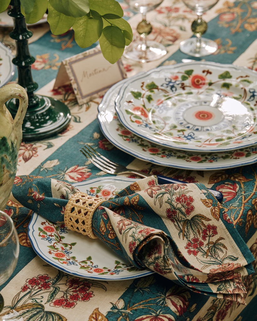 The Botanical tablecloth and napkin prints draw inspiration from antique Victorian-era fabrics and rare floral species from Kew's archive. This elegant print is perfect for entertaining outdoors.