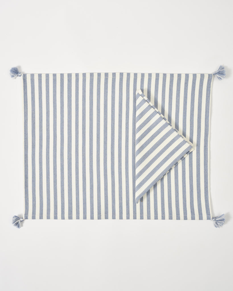 These delightful Guri I Zi light blue striped napkins are handmade in a village in the Albanian mountains. Keeping the textile tradition alive, artisans use a loom made entirely of wood, following the techniques passed down from generation to generation for over a century. Add freshness to your every table setting with these simple yet delightful napkins.