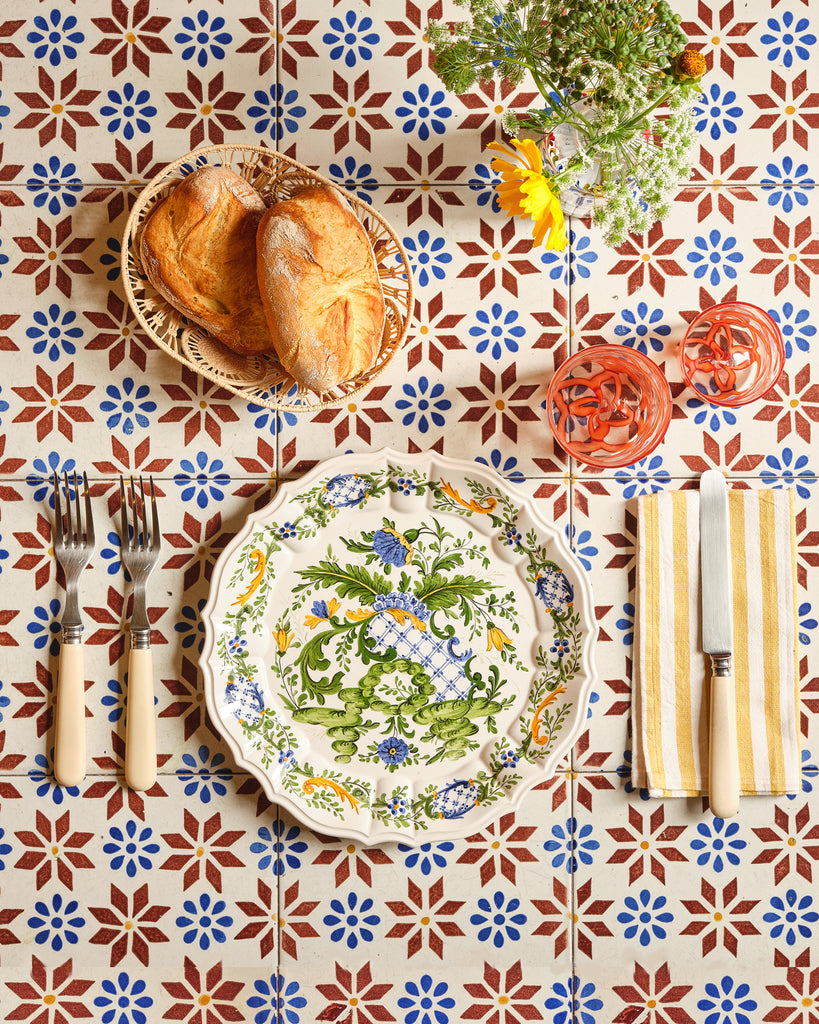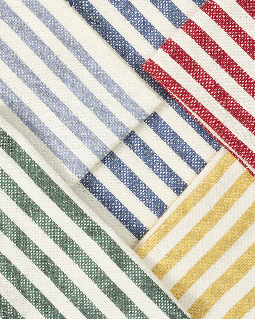 These delightful Guri I Zi blue striped napkins are handmade in a village in the Albanian mountains. Keeping the textile tradition alive, artisans use a loom made entirely of wood, following the techniques passed down from generation to generation for over a century. Set of Two.