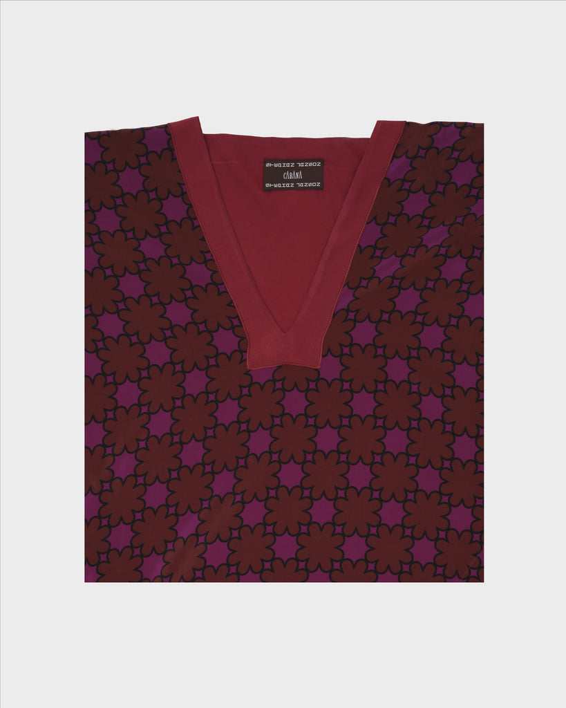 Cut from pure, billowing silk and formed into a fluid silhouette, the limited-edition printed kaftan is available in two colors (fuchsia and blue) and characterized by a geometric floral print, contrasting trimmed neckline and block color on the reverse. Style alone for a loose, sweeping aesthetic, or cinch the waist with a belt for a personalized and defined fit.