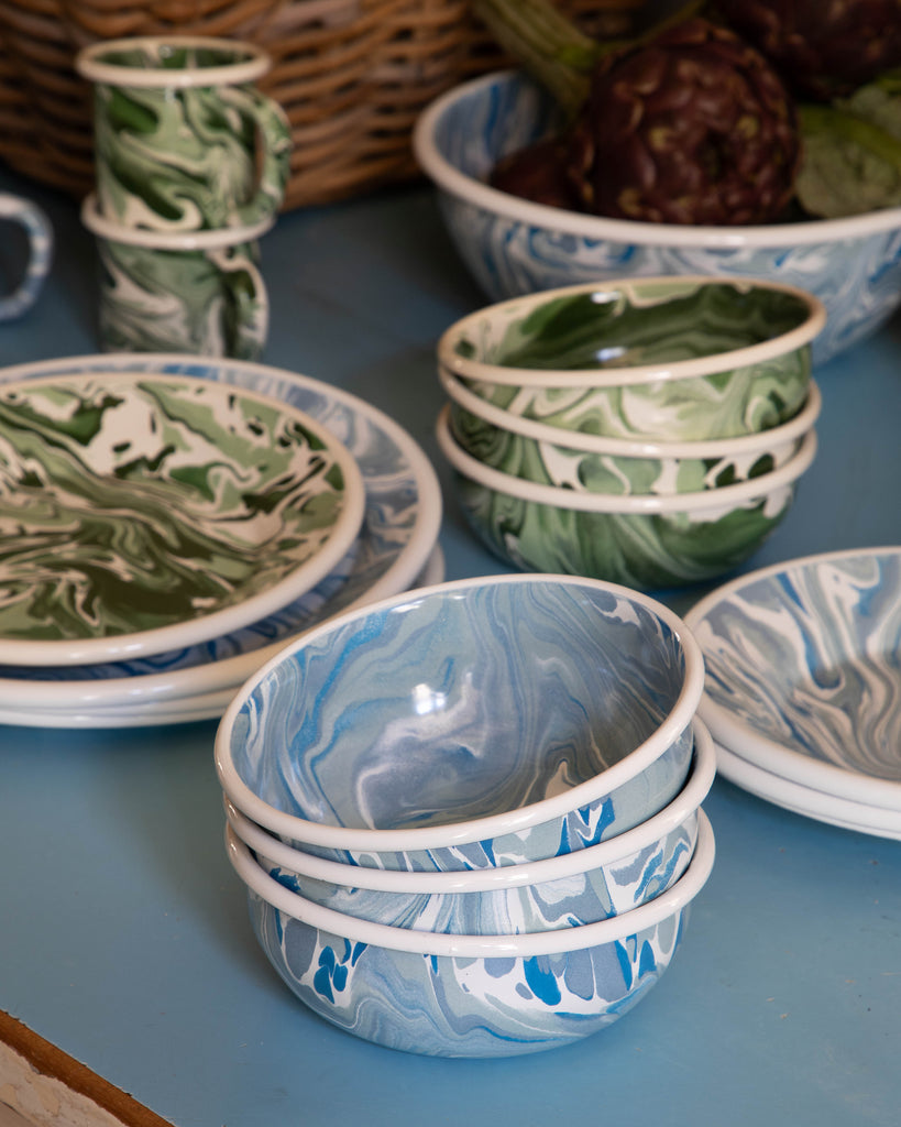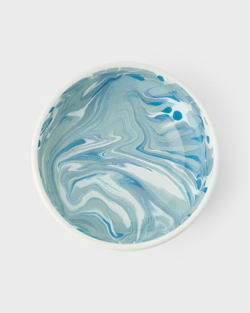 Playful, durable and versatile, the Marbled Enamel Small Bowl finds perfect use whether at home in the kitchen, the garden, at a picnic or at the beach. Its porcelain-infused marbled designs are unique, adding to their distinct charm.