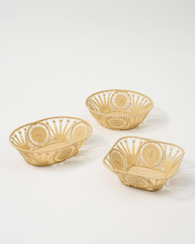 These delightful bread baskets are made by artisans in southern Italy who have been working with raffia for three generations. Made entirely by hand, they are the perfect bread basket or "vide-poches" to complement your table or desk.