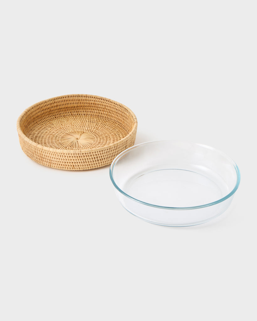 The Woven Sabbia and Glass Baking Dish, seamlessly blends rustic charm with modern durability. Handcrafted with a tight, sturdy weave and featuring high-quality, heat-resistant glass, this versatile dish is perfect for baking, roasting, and serving. Its elegant round shape offers ample space for family-sized meals, while its timeless design adds a touch of warmth and style to any table or kitchen.
